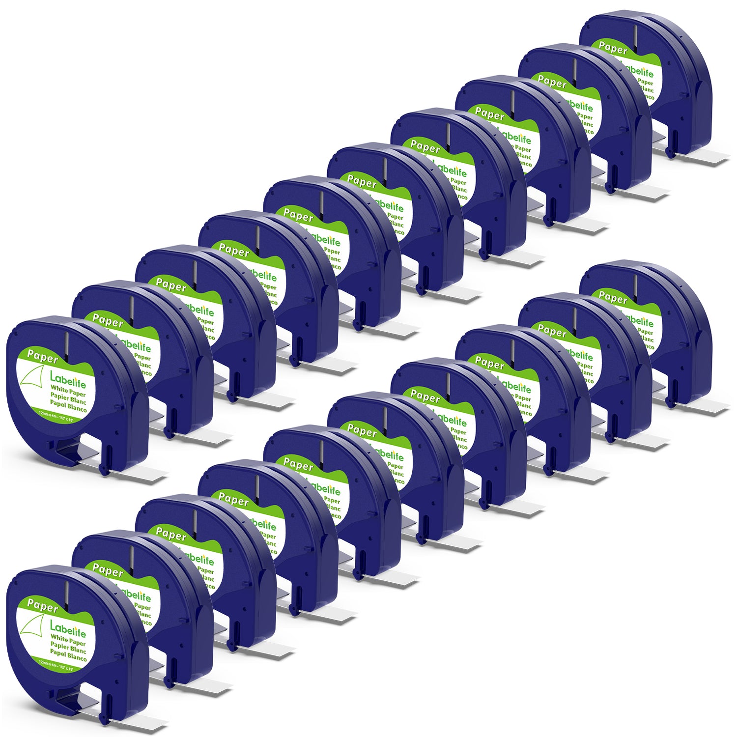 Labelife Label Tape Replace for DYMO LetraTag Label Maker Refills 91330 10697 Black on White Paper Label Refill for DYMO LetraTag LT-100H LT-100T 200B QX50, 12mm x 4m (1/2 Inch x 13 Feet), 6-Pack