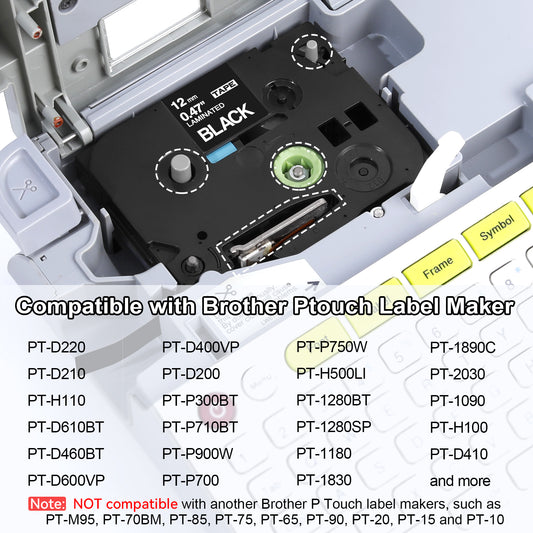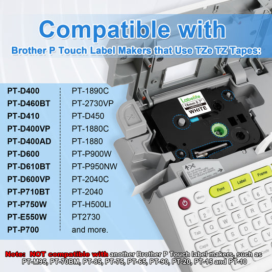 Labelife 5-Pack 9mm Label Tape TZe-221 Replacement for Brother TZe TZ Tape 9mm 0.35" Laminated White Label Maker Tape TZe221 TZ221 for Brother P Touch PT-D210 PT-D220 PT-D200 PT-H110 PT-D400 PT-D610BT