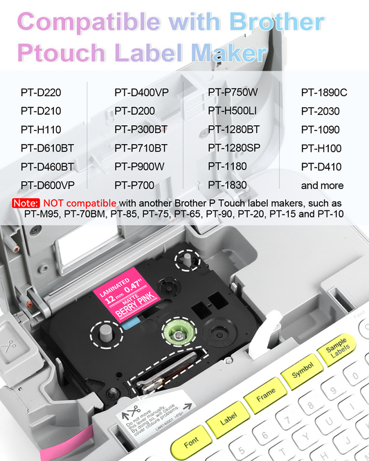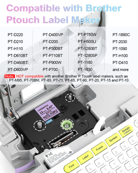 Labelife 6-Pack Compatible Brother P Touch Label Maker Tape, TZe TZ Tape 12mm 0.47 Laminated Color Label Tape for Brother PT-D210 PT-D220 PT-H110 PT-D610BT PT-D400, Pink/Blue/Purple/White/Yellow/Green