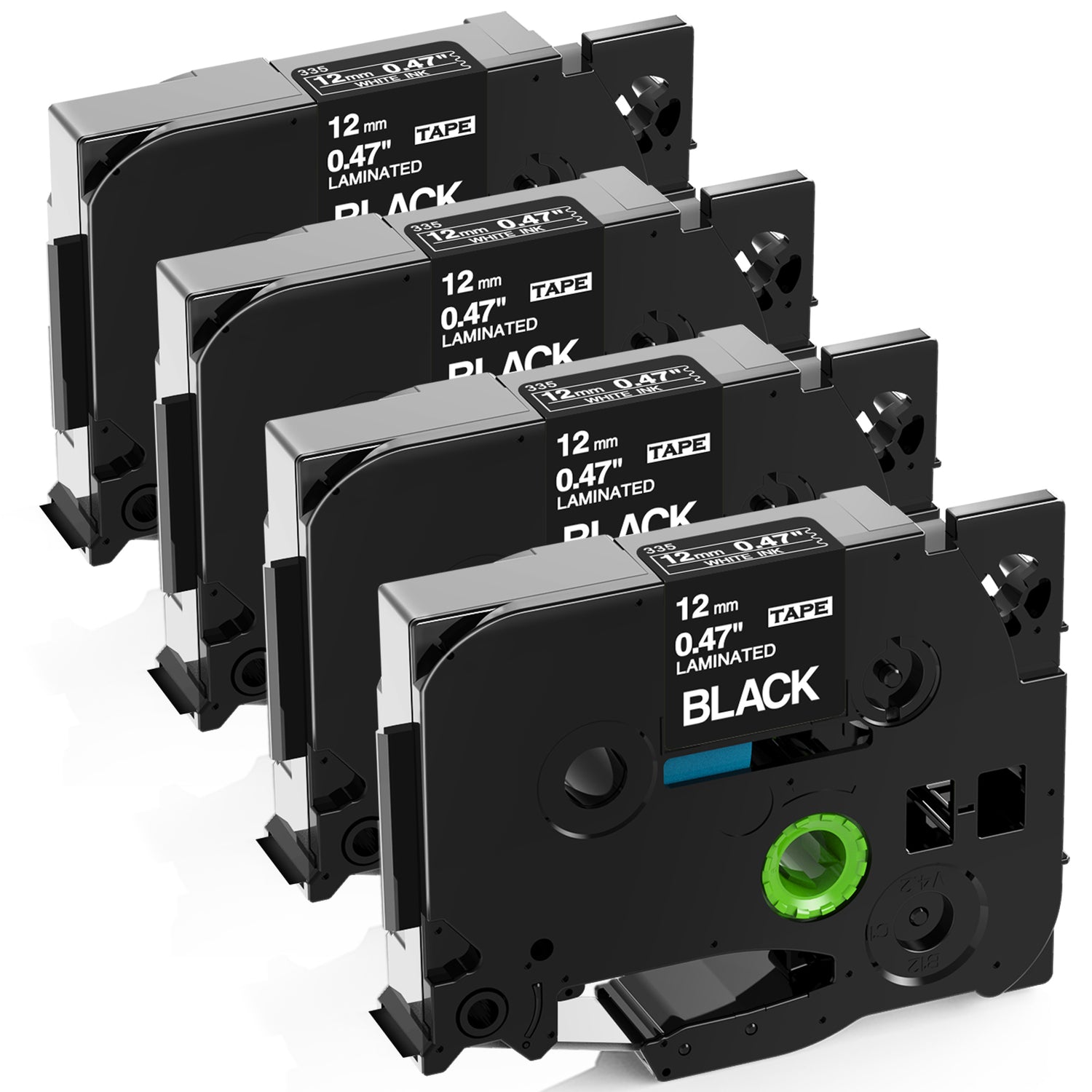 Labelife TZe-335 Label Tape Replacement for Brother P Touch Label Tape White on Black TZe TZ Tape 12mm 0.47 Laminated Black Label Maker Tape TZe335 for Brother PT-D210 PT-D220 PT-H110 Labeler, 4-Pack