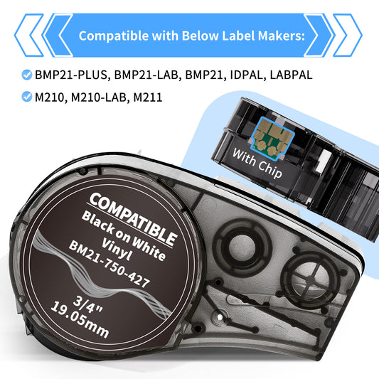 Labelife 3-Pack Compatible M21-750-427 Label Cartridge Self-Laminating Vinyl Cable and Wire Label Tape, Work with M210, M210-LAB, M211, BMP21-PLUS, BMP21-LAB Printer, 0.75 Inch Width, Black on White