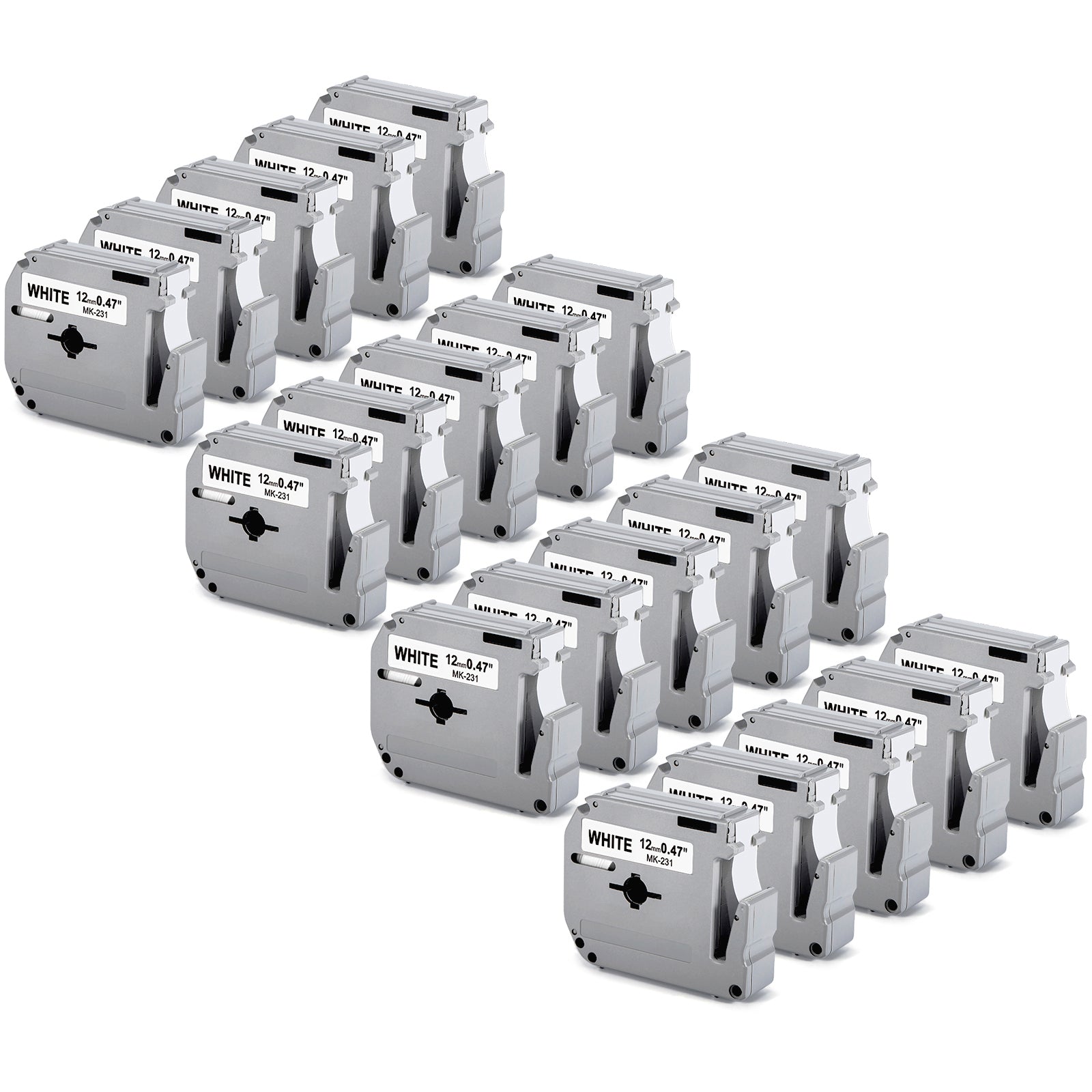 - Include: 20 packs compatible with Brother ptouch M Tape M-K231 M231 MK231 M-231 M-K231S MK Label Tape 12mm 0.47 Black Print on White Tape. Width: 1/2" (12mm 0.47 inch ) each. Length: 26.2"(8m) each.