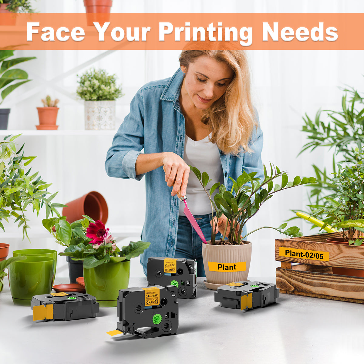 - Wide Application: Compatible with Brother 24mm label tape orange is good addition for business, home, office, retail shop, warehouse and more. TZe-B51 label tape is perfect for labeling kitchen, shelving, cabinets, files, folders and accessories. Great for creating name badges and luggage labels, etc.