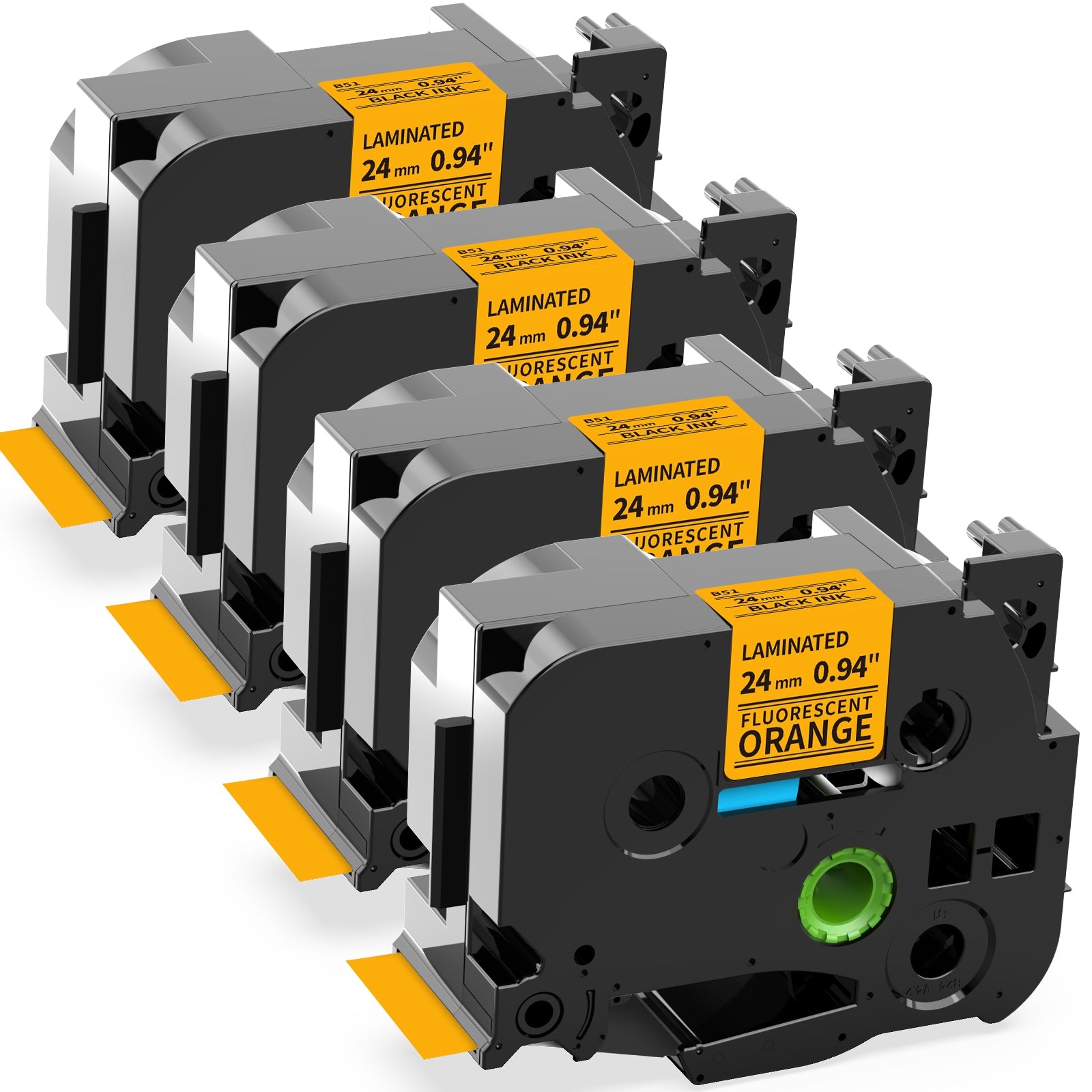 24mm Label Tape Orange Replace for Brother P Touch TZe TZ Tape 24mm 0.94'' TZe-B51 TZB51 Laminated Tape 1'' for Ptouch PTD600 PTD400AD PT1880 Label Makers, 4-Pack Black on Orange