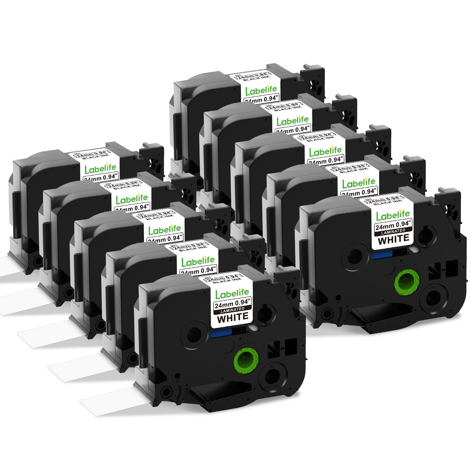 Labelife 10-Pack 24mm Label Tape TZe-251 Replacement for Brother P Touch 1 Inch Label Tape TZe TZ Tape 24mm 0.94 Laminated White Tape TZe251 for Brother Ptouch PT-D600 PT-D610BT PT-P710BT Label Maker