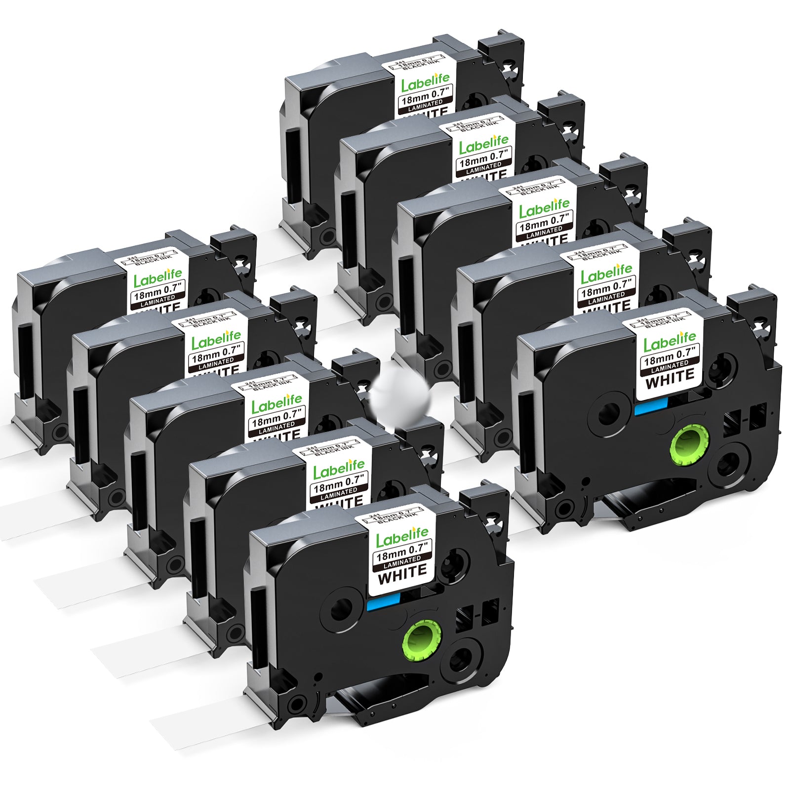 Labelife 10-Pack Compatible Brother P Touch 18mm Label Tape TZe-241 TZe TZ Label Tape 18mm 0.7 Laminated White 3/4 Inch Label Tape TZe241 for Brother PT-D400AD PT-D410 PT-D600 PT-P710BT Label Maker