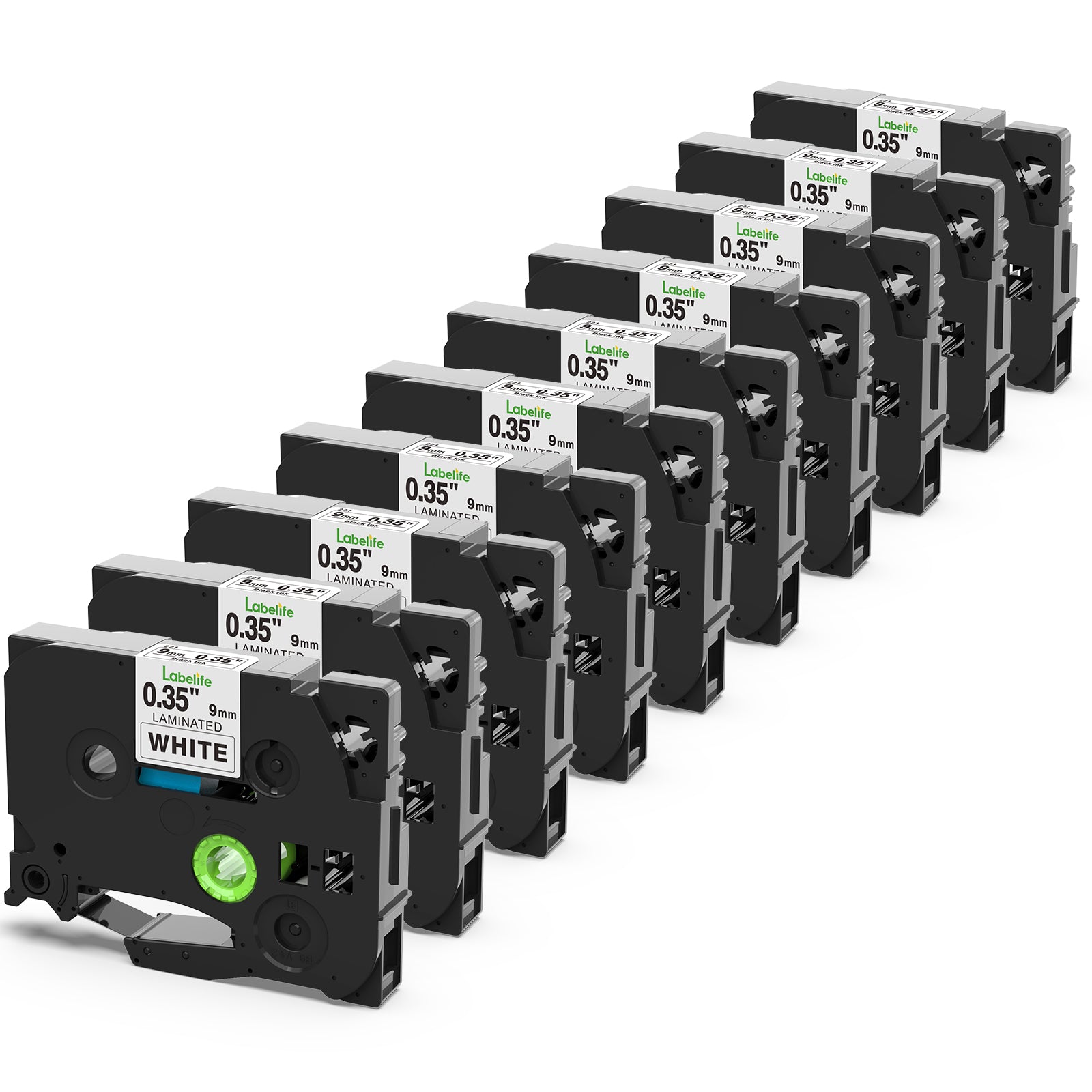 Labelife 10-Pack TZ Tape 9mm 0.35 Laminated White Label Tape TZe-221 Replacement for Brother P Touch 9mm TZe Label Tape TZe221 TZ-221 for Brother PT-D210 PT-D220 PT-D200 PT-H110 PT-D400 PT-1880 PT1180