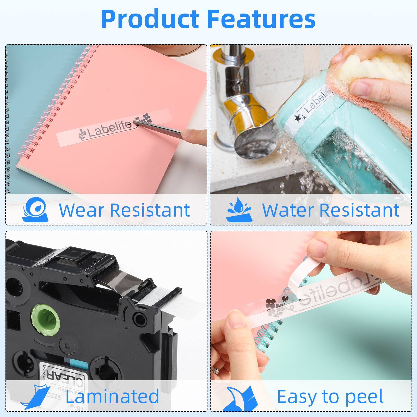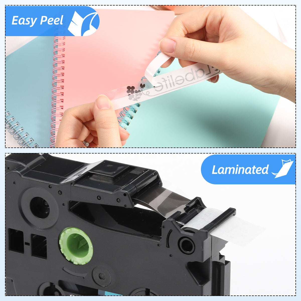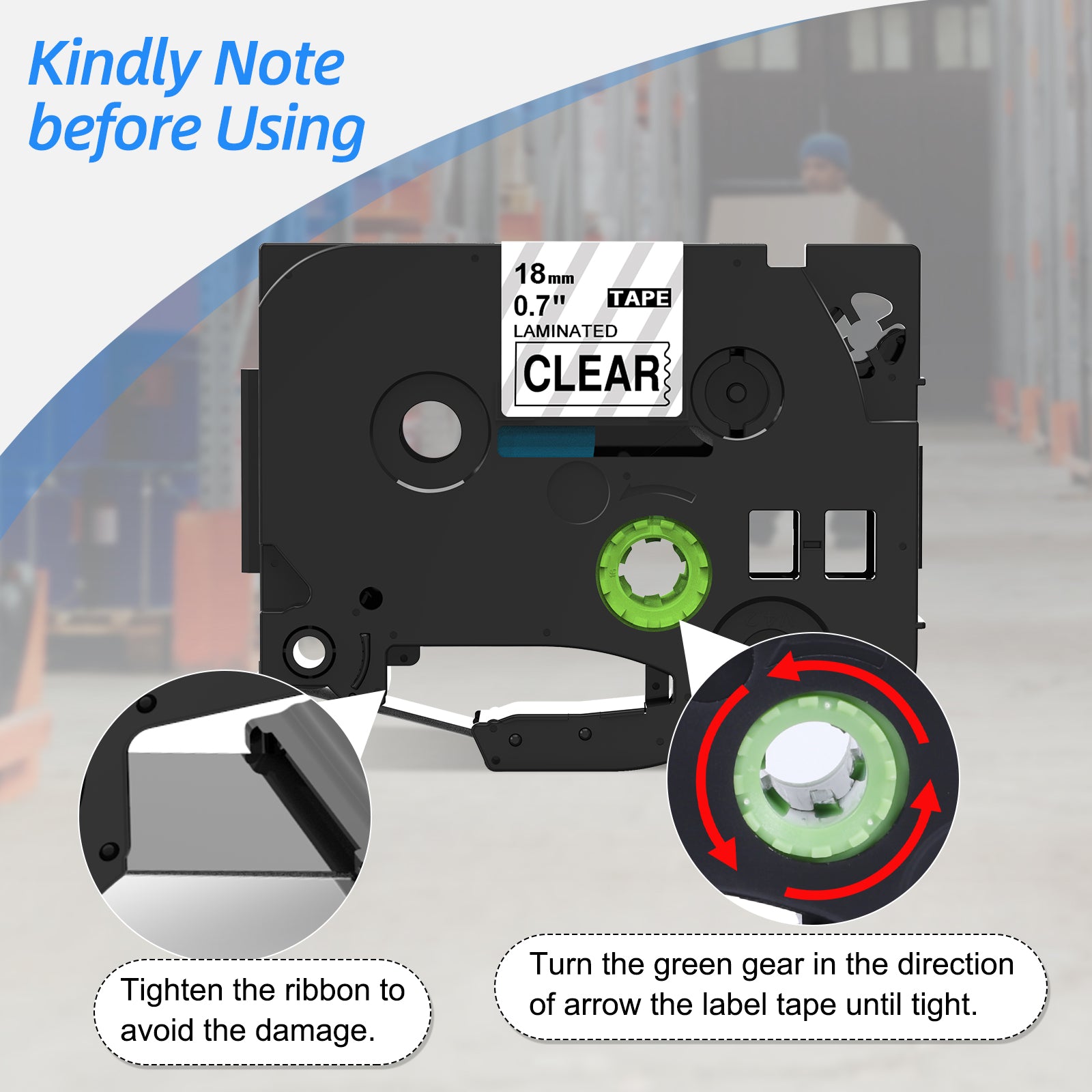 - Feature: Easy to peel: The backing has a slit in the middle. Easier to peel from the Middle than from the Side. Laminated 18mm 0.7 label tapes that use thermal transfer printing technology are better for indoor and outdoor use. These print Clearer and more durable than similar labels even in harsh environments. Water resistant, Strong Adhesive, No Residue When Removed, Sun resistant, High and low temperature resistant, Fade and Abrasion resistant, Grease resistance.