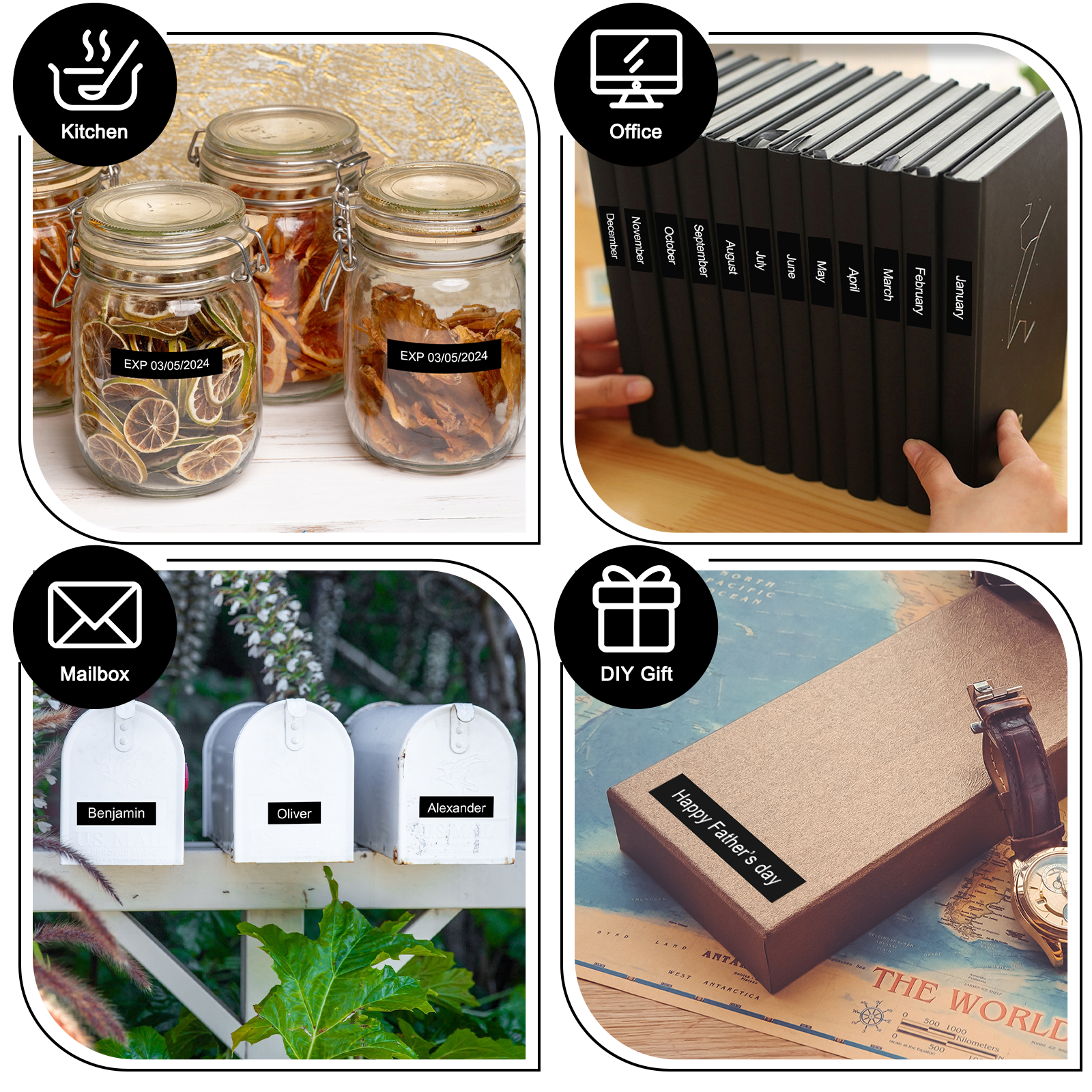 Labelife 24mm Black Label Tape TZe-355 Replacement for Brother P Touch TZe TZ Tape 24mm 0.94 Laminated White on Black Tape TZe355 for Brother Ptouch PT-D600 PT-D610BT PT-P710BT Label Maker, 4-Pack
