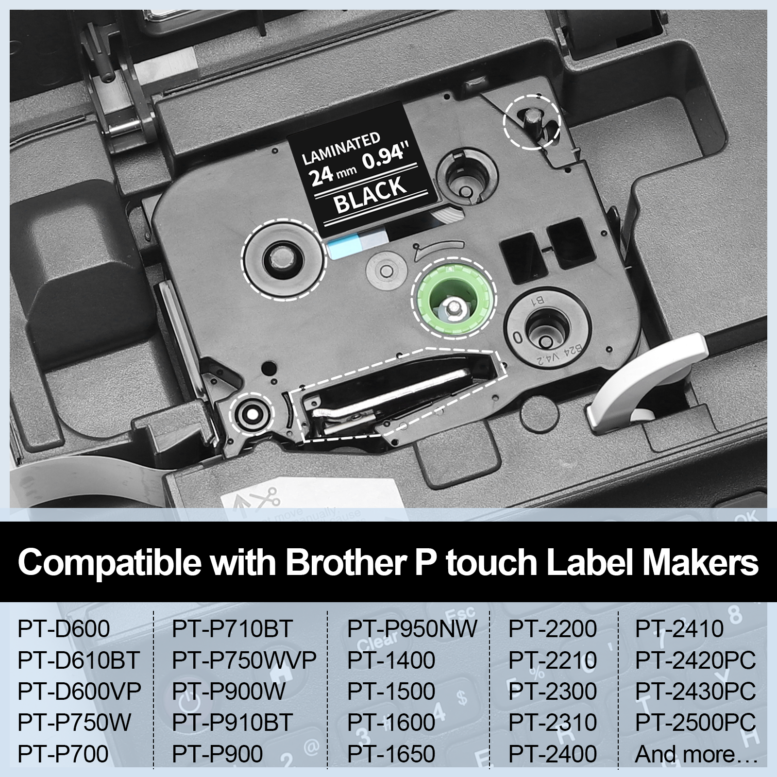 - Compatible with Brother P Touch Label Makers that Use Up to 24mm 0.94 inch or 36mm 1.4 inch TZe Label Tapes: PT-D600, PT-D610BT, PT-D600VP, PT-P710BT, PT-P750WVP, PT-P700, PT-2730VP, PT-H500LI, PT-2730, PT-2430PC, PT-2300, PT-E500, PT-1400, PT-1500, PT-1500PC, PT-1600, PT-2110, PT-2200, PT-2210, PT-2300, PT-2310, PT-2400 and more.
