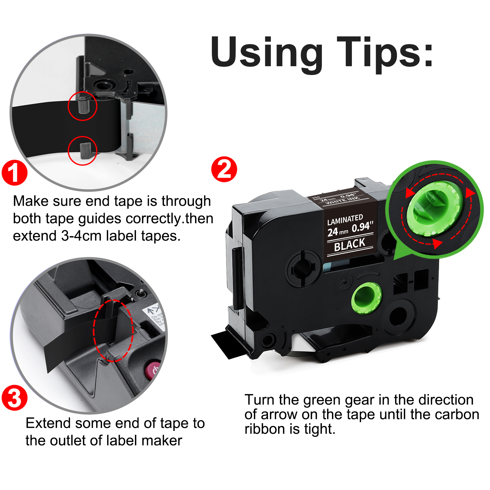 Note: These Compatible Brother P Touch 24mm Label Tapes TZe-355 CAN NOT work with below Brother P Touch label makers, such us PT-D210, PT-D220, PT-H110, PT-H111, PT-D200, PT-M95, PT-90, PT-85, PT-80, PT-70, PT-65, etc. Please check the model of available label maker first