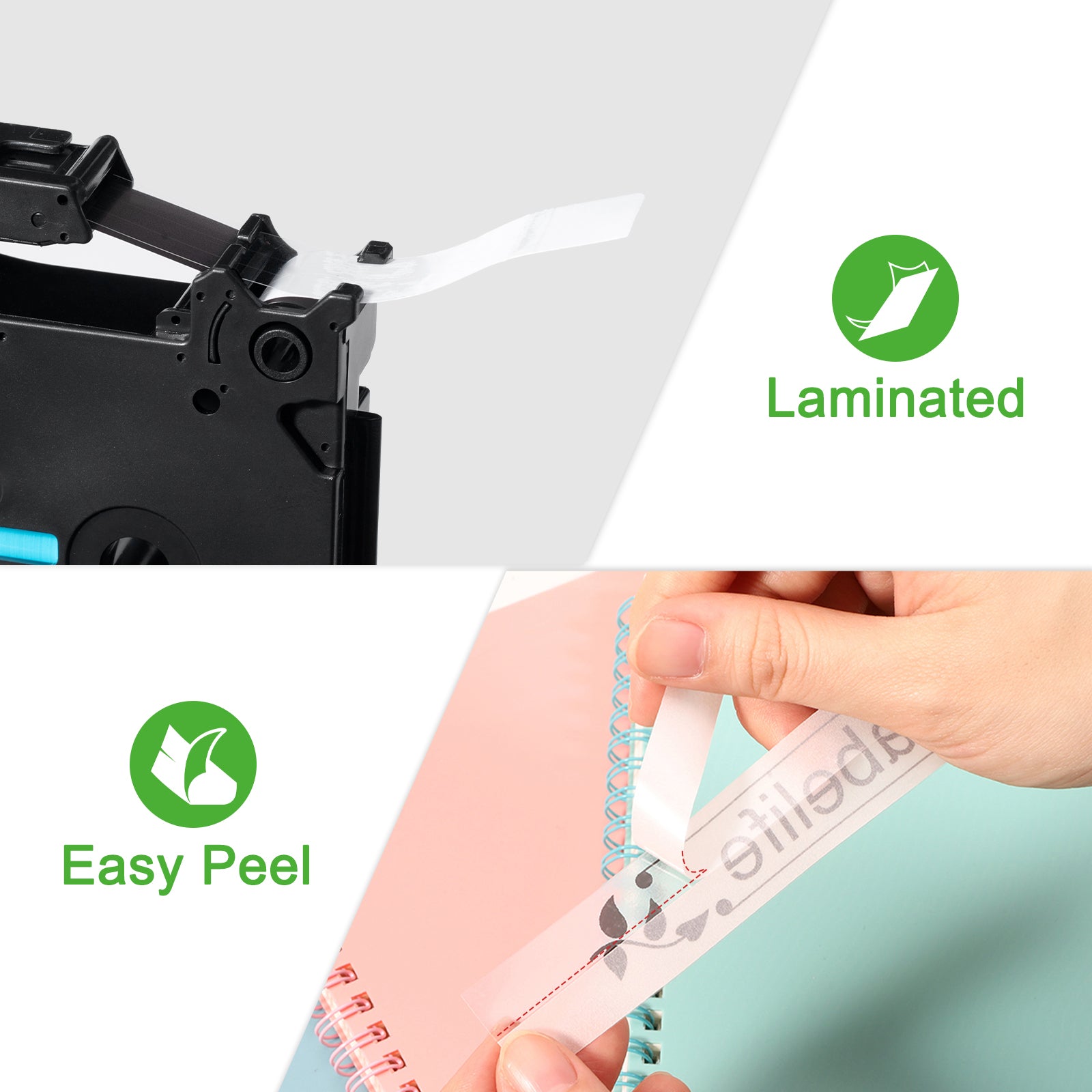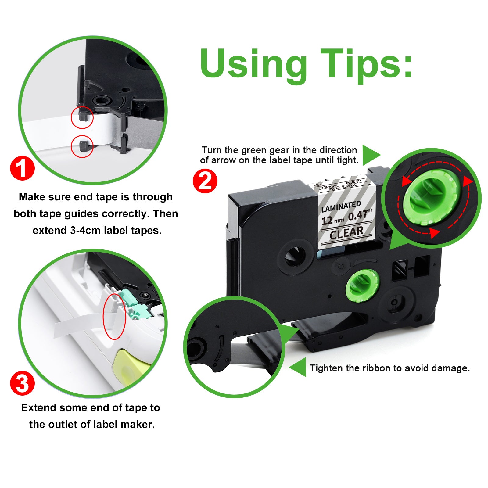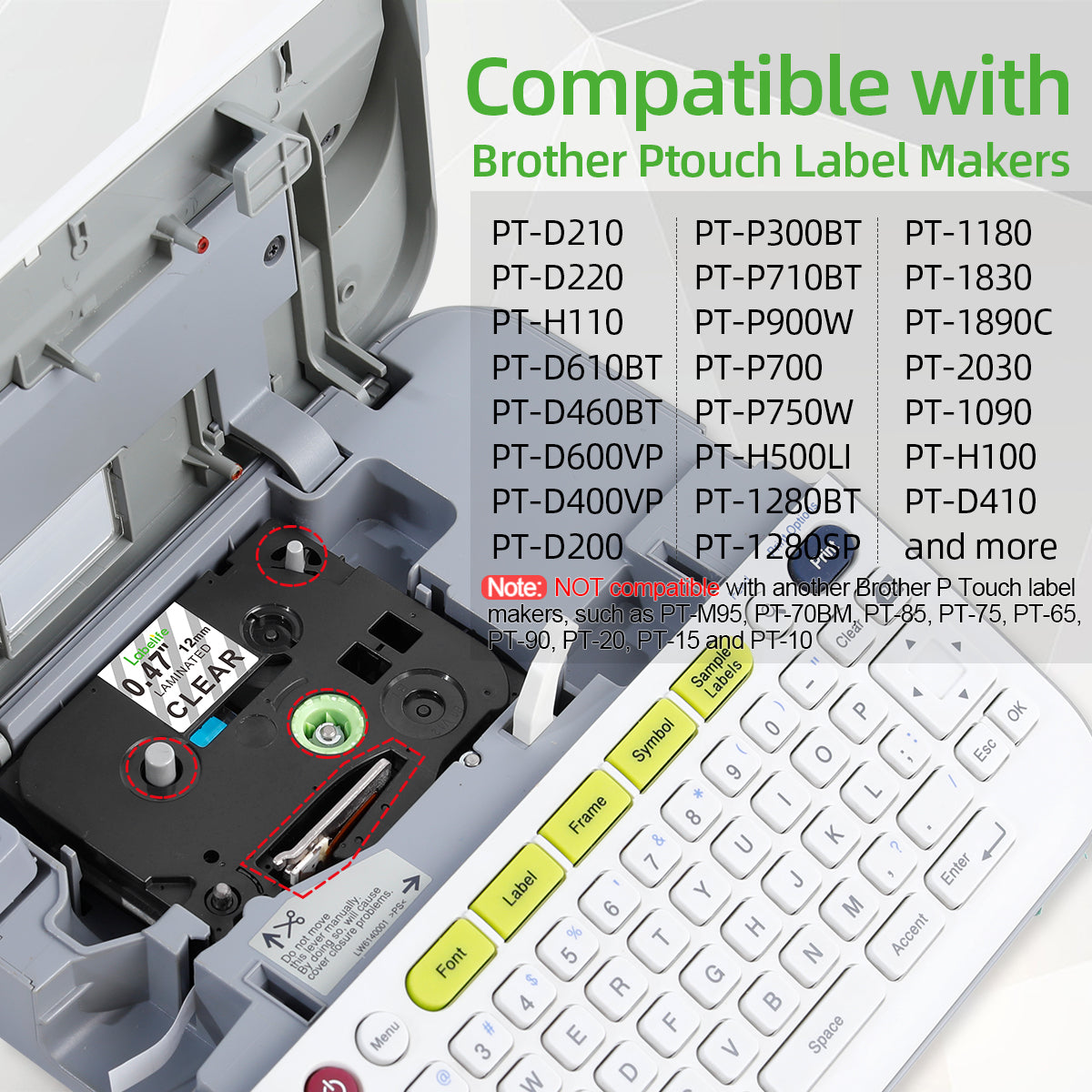 - These Compatible Brother P Touch clear label maker tapes TZe-131 are laminated. Used for indoors and outdoors. These TZe TZ Tape 12mm 0.47 inch laminated clear label tapes can withstand water, fade, abrasion and temperature.