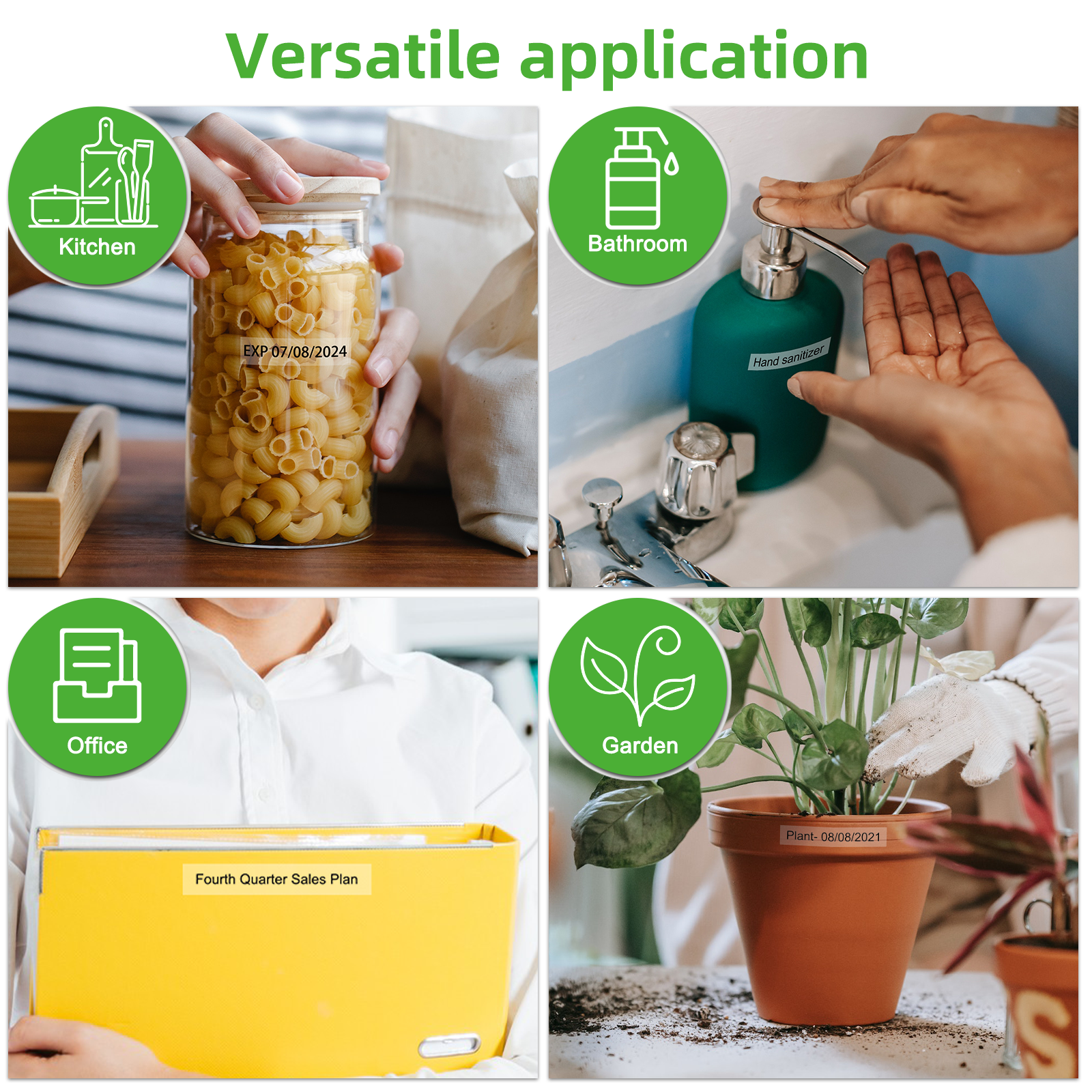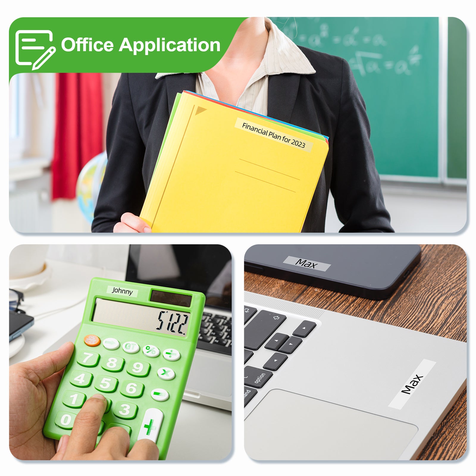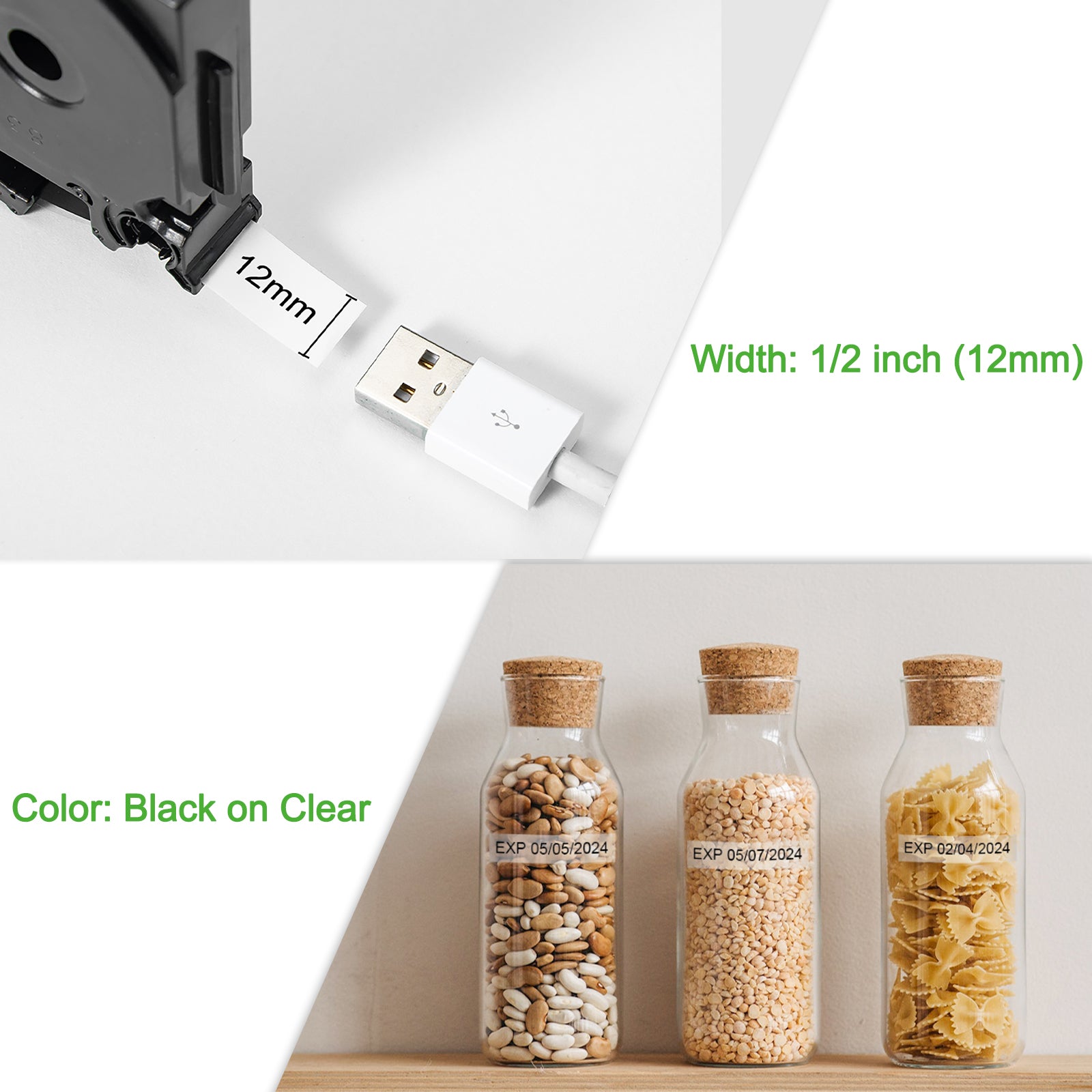 - Color: Black Text on Clear Background. Width: 1/2 inch (12mm). Length: 26.2 feet (8m) for each label tape, 131 feet for 5-pack label tapes