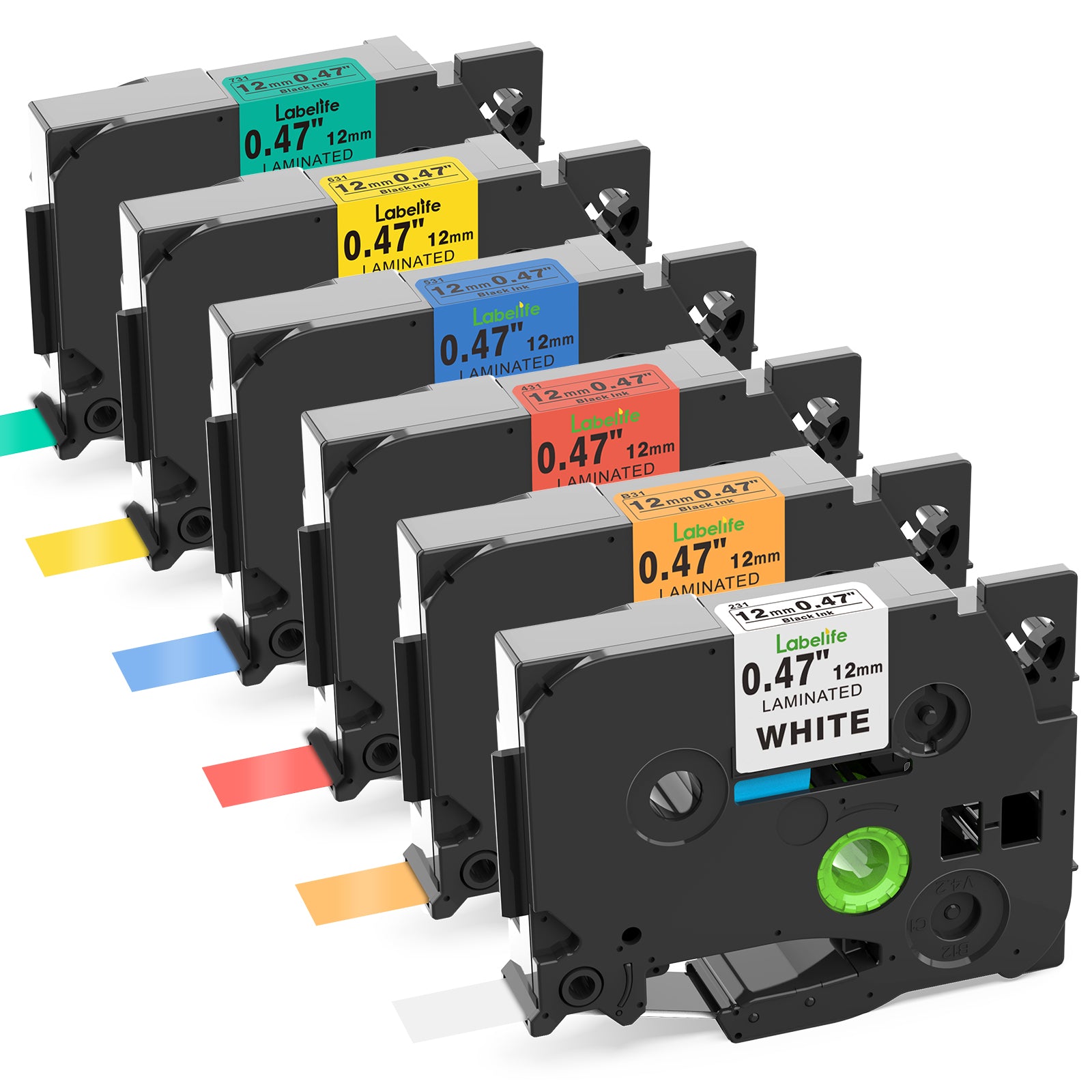 Labelife 6-Pack Compatible Brother P Touch Label Tape TZe TZ Tape 12mm 0.47 Laminated Label Maker Tape for Brother Ptouch PT-D210 PT-H110 PT-D220 PTD610BT D400 D600, White/Orange/Red/Blue/Yellow/Green