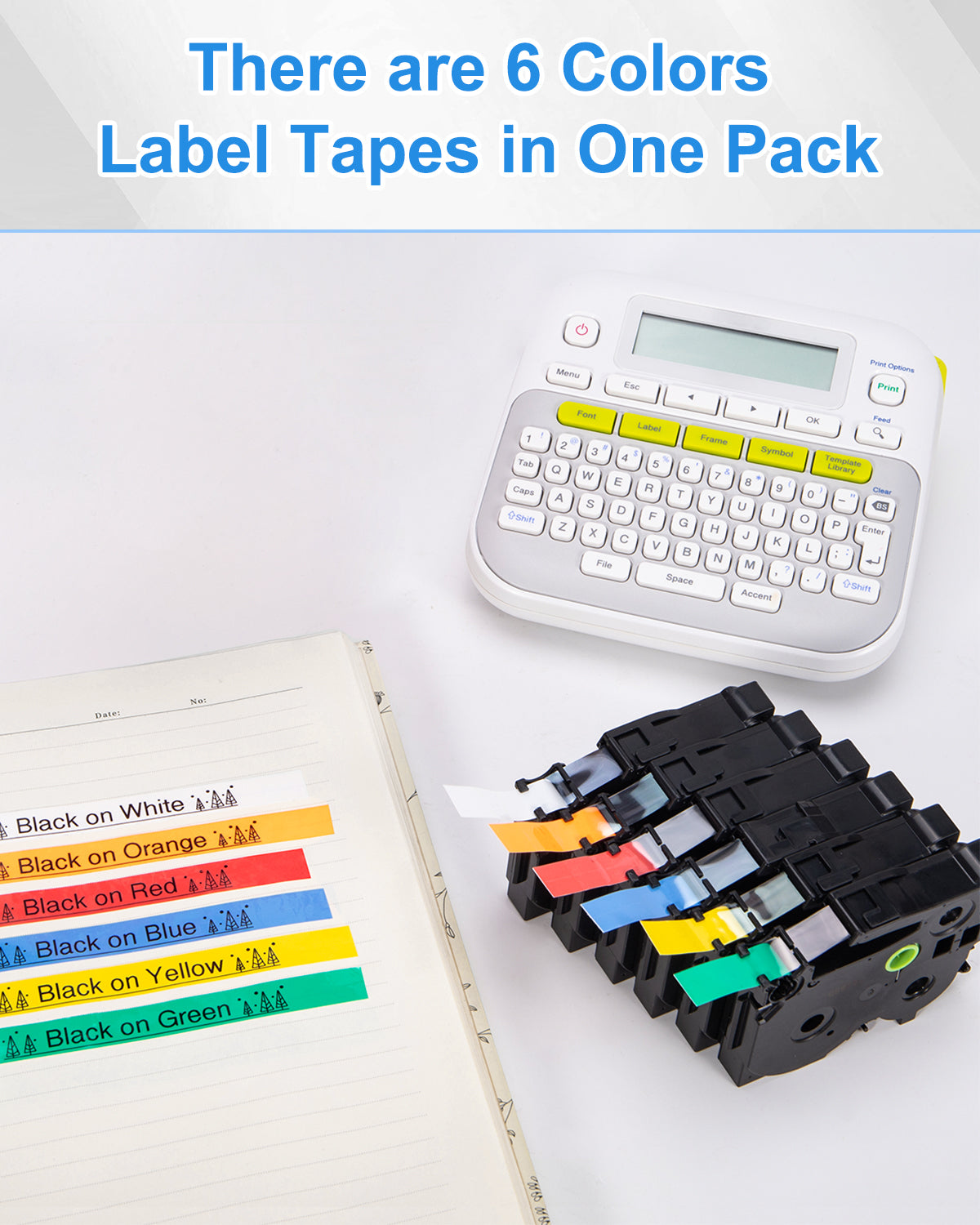 - Not original. 6-Pack Compatible Brother P Touch Label Tapes, Color: Black Text on White/Orange/Red/Blue/Yellow/Green Background