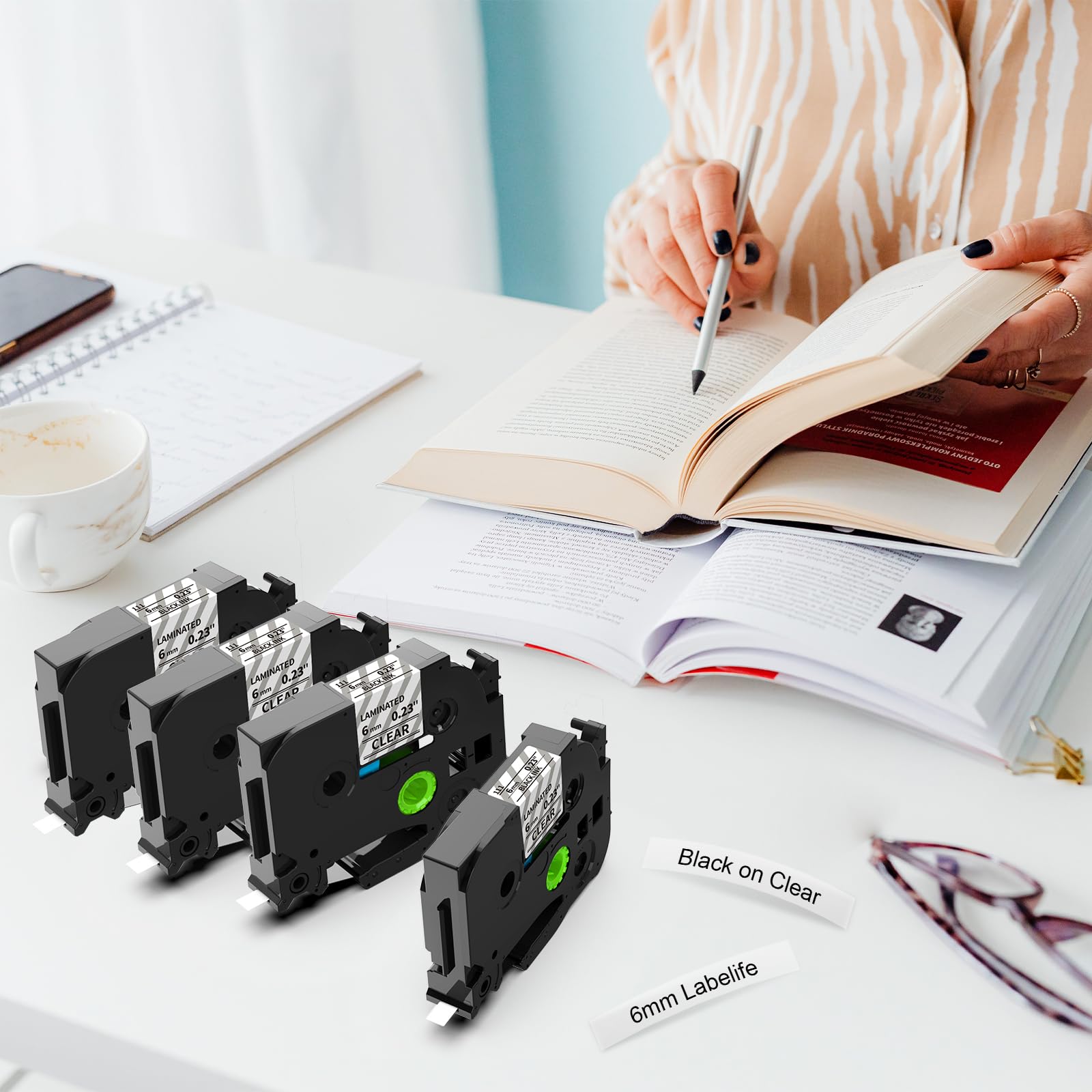 - [Widely used] Labelife TZe-111 clear tape is ideal organiazation for indoor and outdoor such as factory, office, school, home, shop, hospital, hotel, lab and so on. Print clear and durable Labelife 6mm clear label tape to meet your daily needs! It makes work and life more organized and tidy