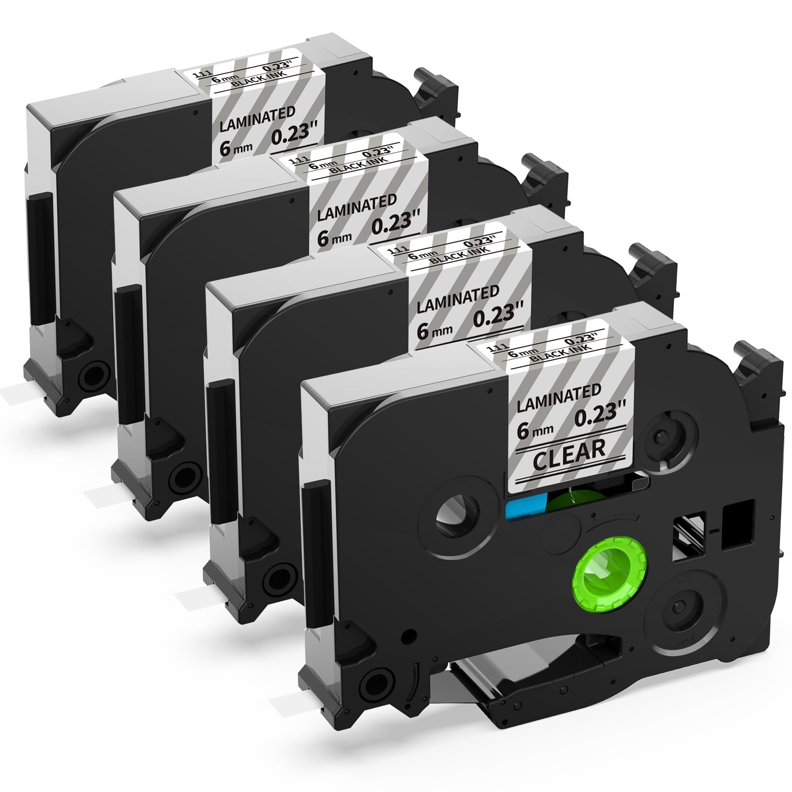 - [Package] 4 packs compatible with Brother p touch TZe TZ Tape 6mm 0.23'' 1/4'' laminated clear. Model: TZe-111 TZe111 TZ-111 AZe-111