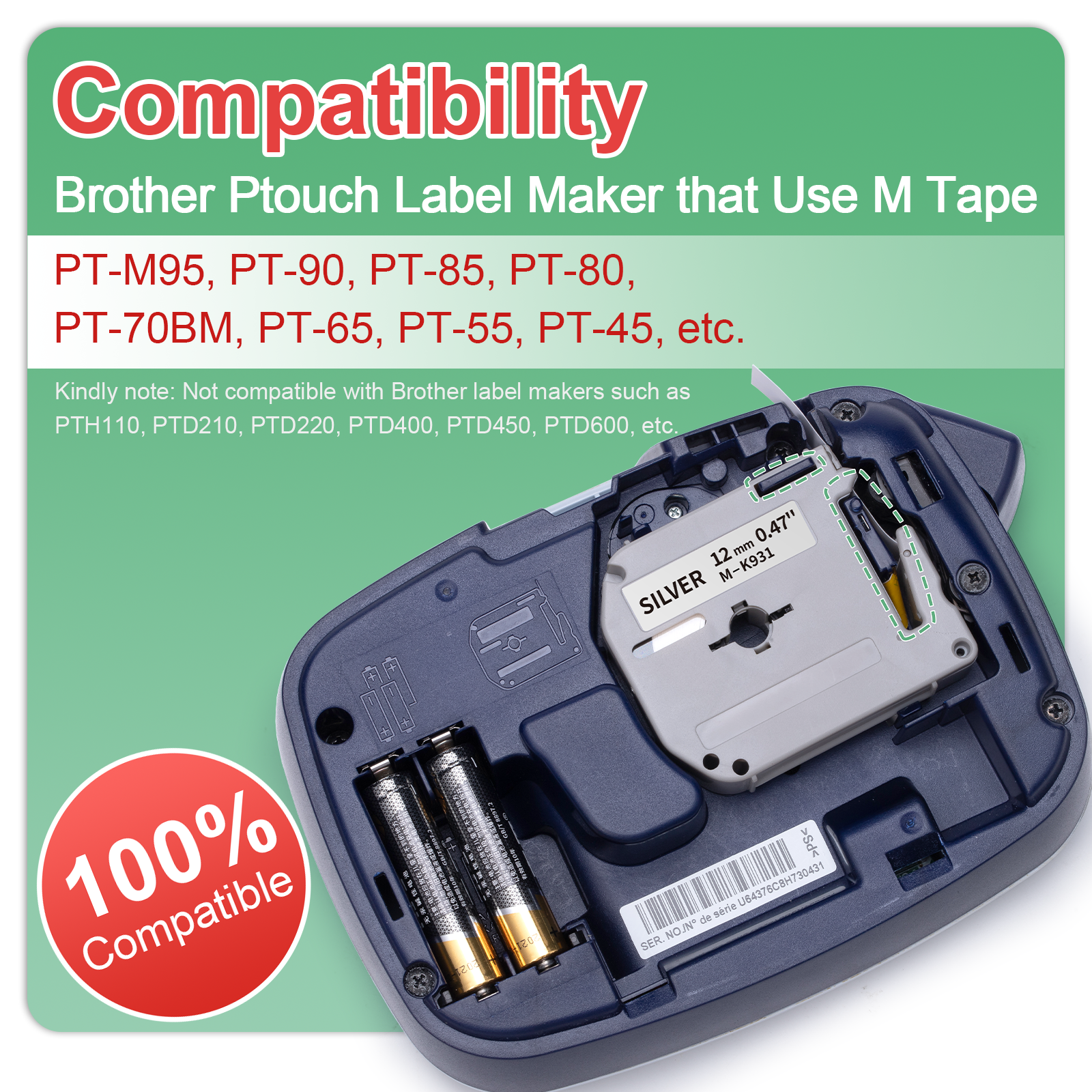 - [Compatibility] Labelife m931 tape compatible with Brother ptouch label makers use M tape: PT-M95, PT-70BM, PT-65, PT-45, PT-90, PT-80, PT-85, PT-70, PT-45M, PT-55BM, PT-55S, PT-65SB, PT-65SCCP, PT-65SL, PT-65VP, PT-70BBVP, PT-70BMH, PT-70HK, PT-70HOL, PT-70HOT, PT-70SP, PT-70SR, PT-80SCCP and more.