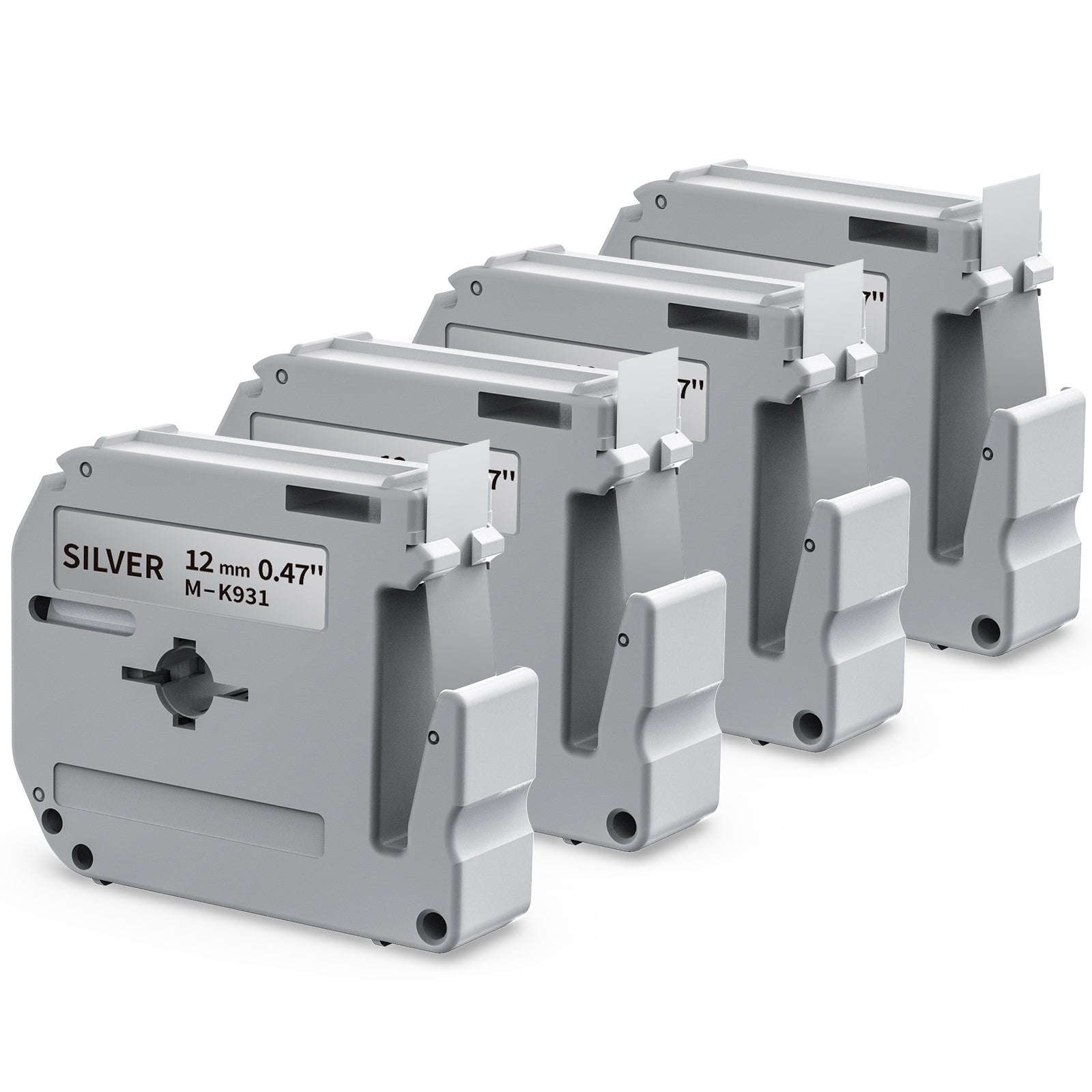 - [Package] 4 packs compatible with Brother p touch m tape m-931 m931 m-k931 black print on silver tape. Width: 1/2" (12mm 0.47 inch ) each. Length: 26.2"(8m) each m label tape.
