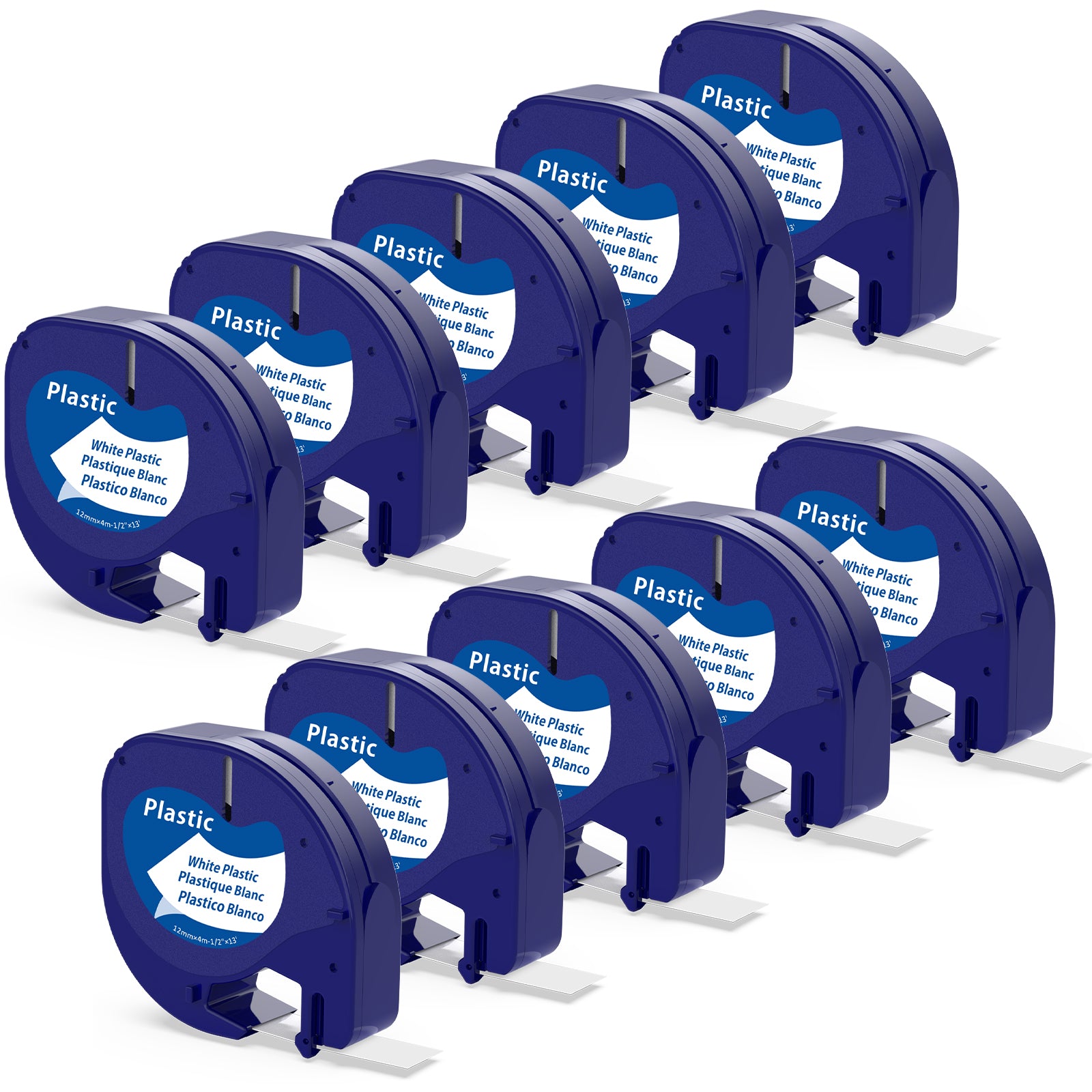 Labelife Replace for Dymo LetraTag Refills White Plastic 12mm x 4m 1/2" x 13' 91331 S0721660 LT Label Maker Tape Refills for DYMO Letra Tag LT-100H LT-100T Plus 200B QX50, 10-Pack