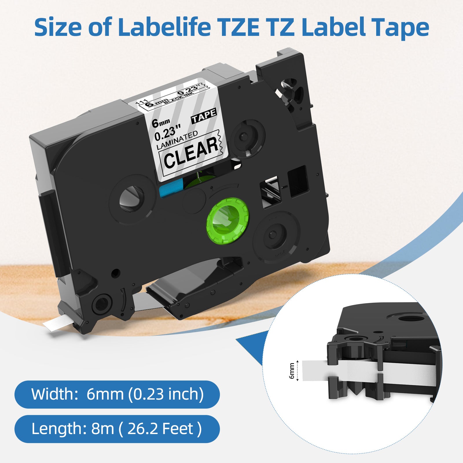 - Widely used: Labelife TZe-111 clear tape is ideal organiazation for indoor and outdoor such as factory, office, school, home, shop, hospital, hotel, lab and so on. Print clear and durable Labelife 111 clear label tape to meet your daily needs! It makes work and life more organized and tidy.