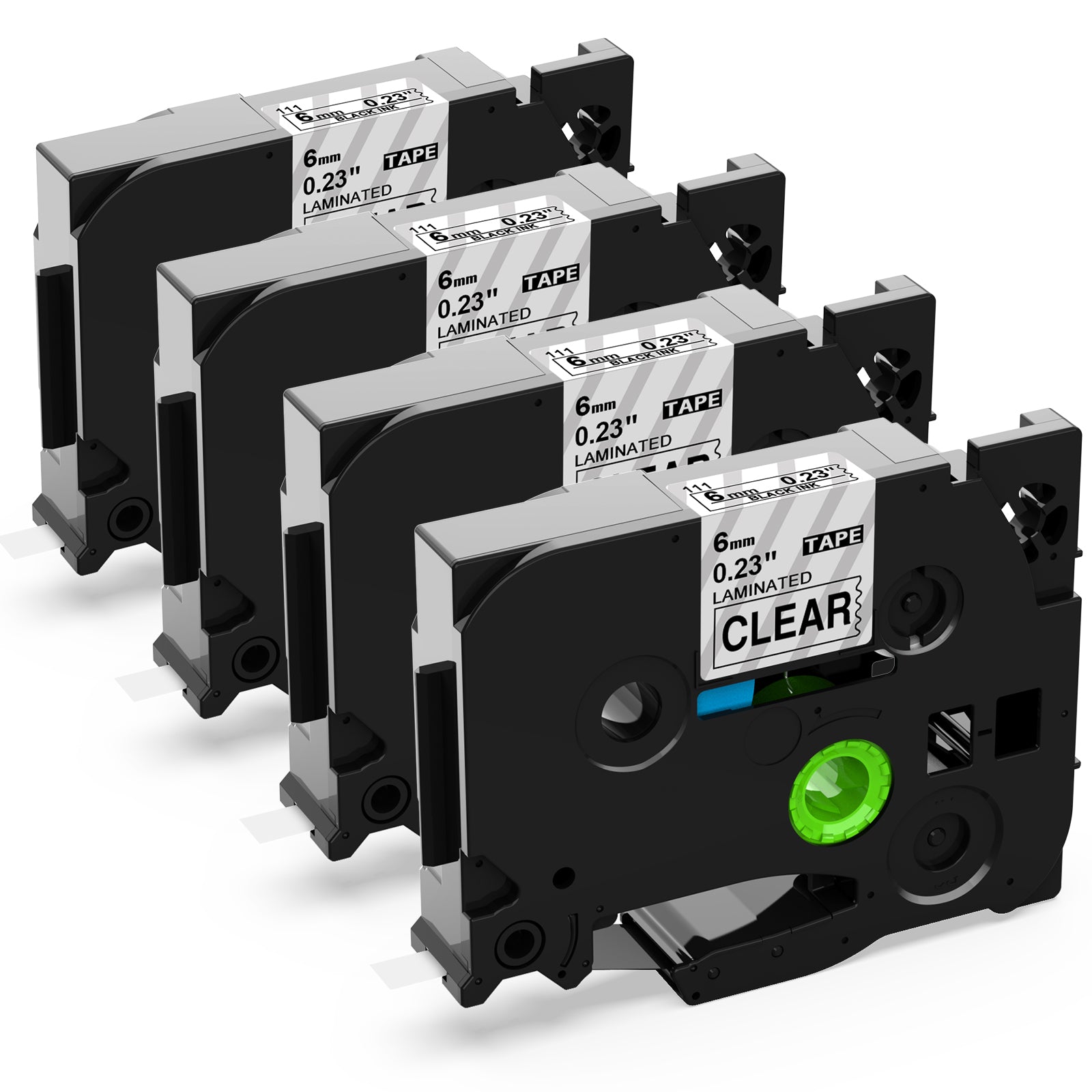 - Package: 4 packs compatible with Brother p touch TZe TZ Tape 6mm 0.23'' 1/4'' laminated clear. Model: TZe-111 TZe111 TZ-111 AZe-111.
