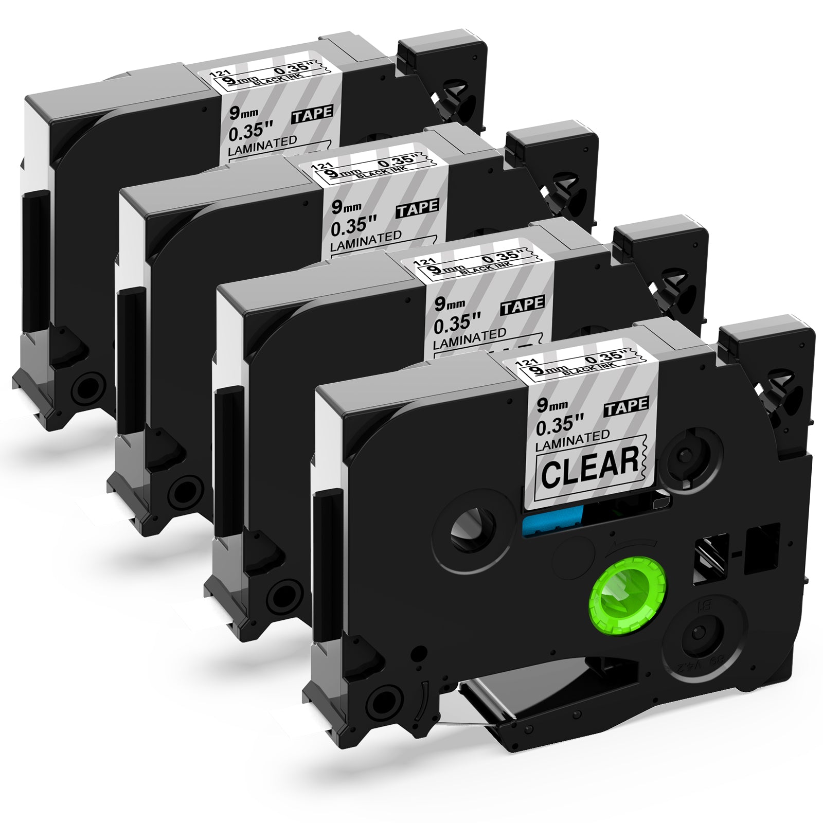 - Package: 4 packs compatible with Brother p touch TZe TZ Tape 9mm 0.35 laminated clear. Model: TZe-121 TZe121 TZ-121 AZe-121.