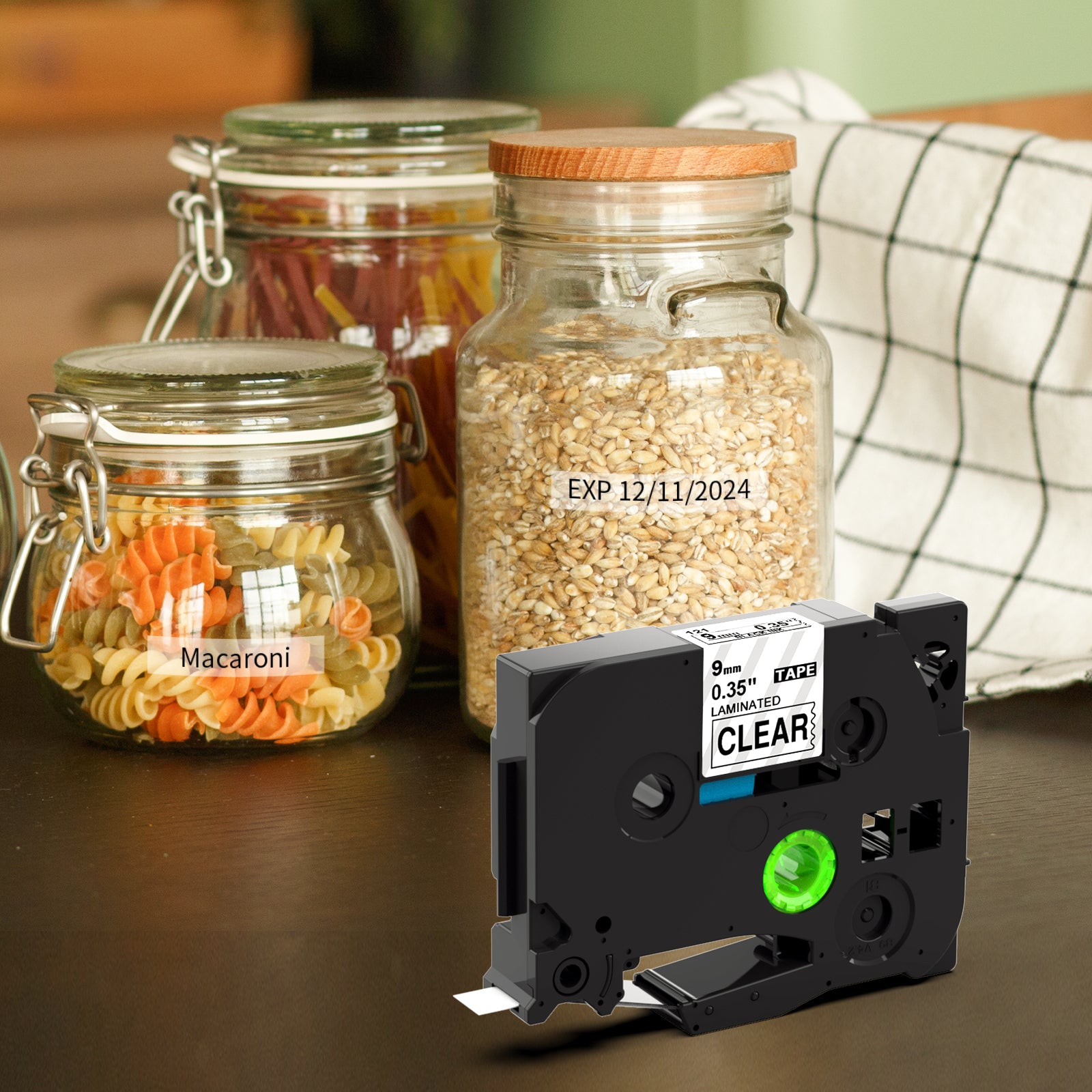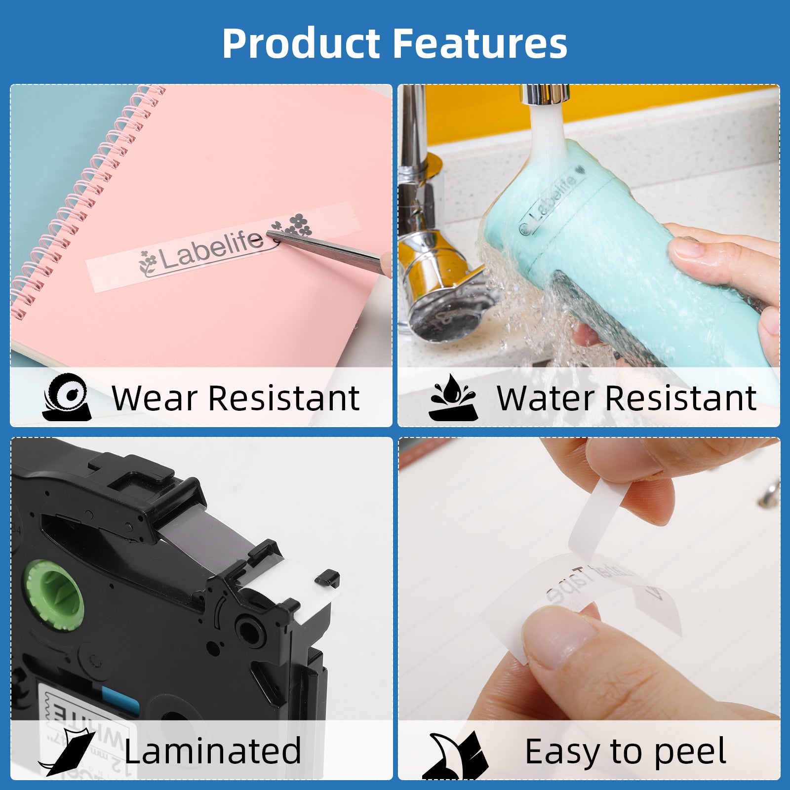 - Durability labels: Compatible with Brother p touch label maker 9mm clear tapes are laminated tape. It has features of water and oil resistant, abrasion resistant, temperature resistant, fade resistant, etc. Strong adhesive but zero sticky residue when removed. Split backing for easy peeling.