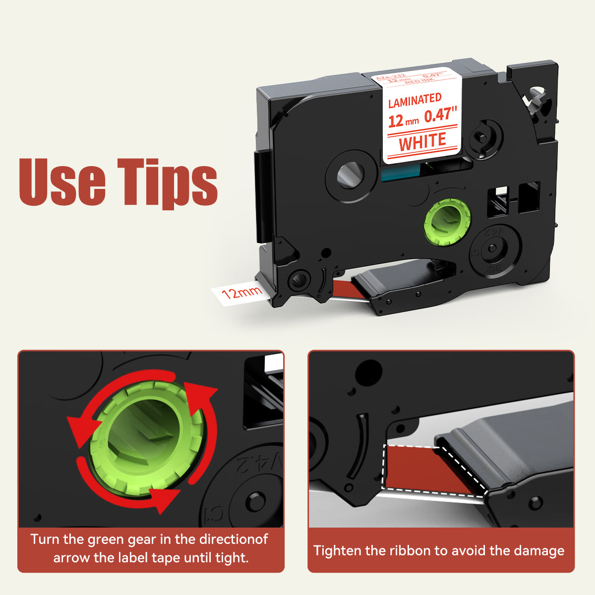 - Compatibility: Label tape 12mm 0.47'' red on white compatible with Brother P Touch label makers PT-D210, PT-D220, PT-D200, PT-H110, PT-D410, PT-D610BT, PT-D400, PT-D600, PT-P710BT, PT-310BT, PT-D460BT, PT-D400AD, PT-D400VP, PT-H111, PT-D450, PT-D600VP, PT-D200G, PT-1090, PT-1190, PT-1230PC, PT-1290, PT-1880C, PT-1880SC, PT-1880W, PT-1890C, PT-1890SC, PT-1890W, PT-1950, PT-2430PC, PT-6100, PT-D800W, PT-H100, PT-E100, PT-H300, PT-H300LI, PT-H500LI, PT-P700, PT-P750W, PT-9600 as well as others.