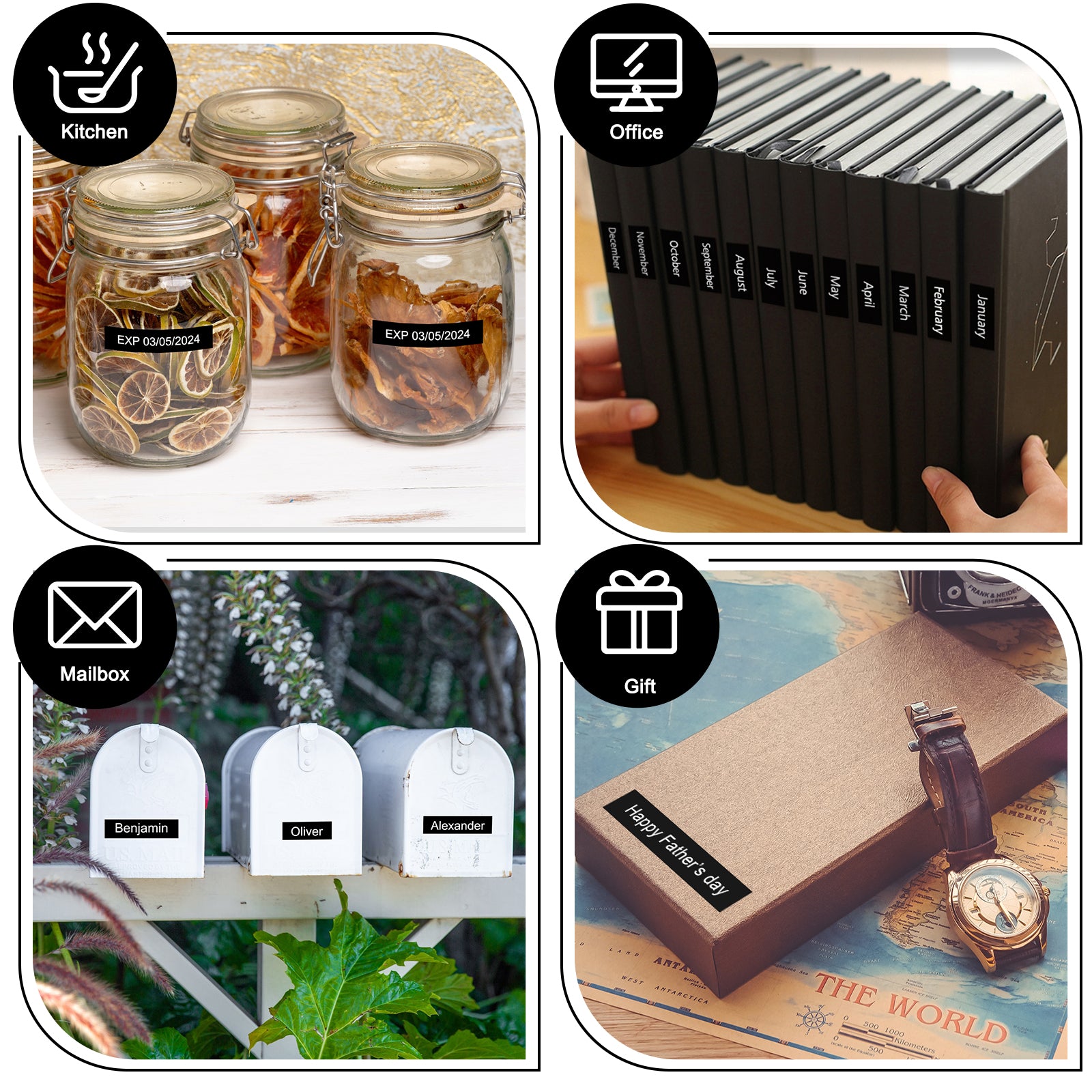 Labelife TZe-335 Label Tape Replacement for Brother P Touch Label Tape White on Black TZe TZ Tape 12mm 0.47 Laminated Black Label Maker Tape TZe335 for Brother PT-D210 PT-D220 PT-H110 Labeler, 4-Pack