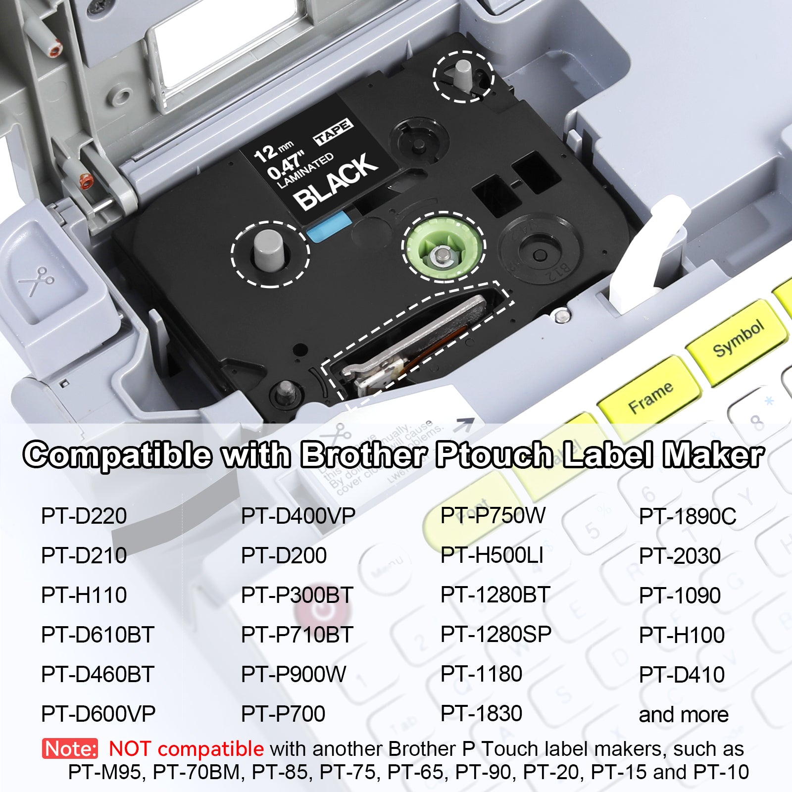 - Compatible with Brother P Touch label makers that use TZe or TZ Tapes: PT-D210, PT-H110, PT-D600, PT-D400AD, PT-D600VP, PT-P710BT, PT-H100, PT-D200, PT-D400VP, PT-P750W, PT-E550W, PT-P750WVP, PT-P700, PT-D450, PT-E500, PT-2730, PT-H500LI, PT-2430PC, PT-1280BT, PT-1880C, PT-1890C, PT-2030, PT-1000, PT-1090, PT-1180, PT-1190, PT-1280SP, PT-1400, PT-1500, PT-1600, PT-1750, PT-1800, PT-1810, PT-1830, PT-18R, PT-1900 and more.