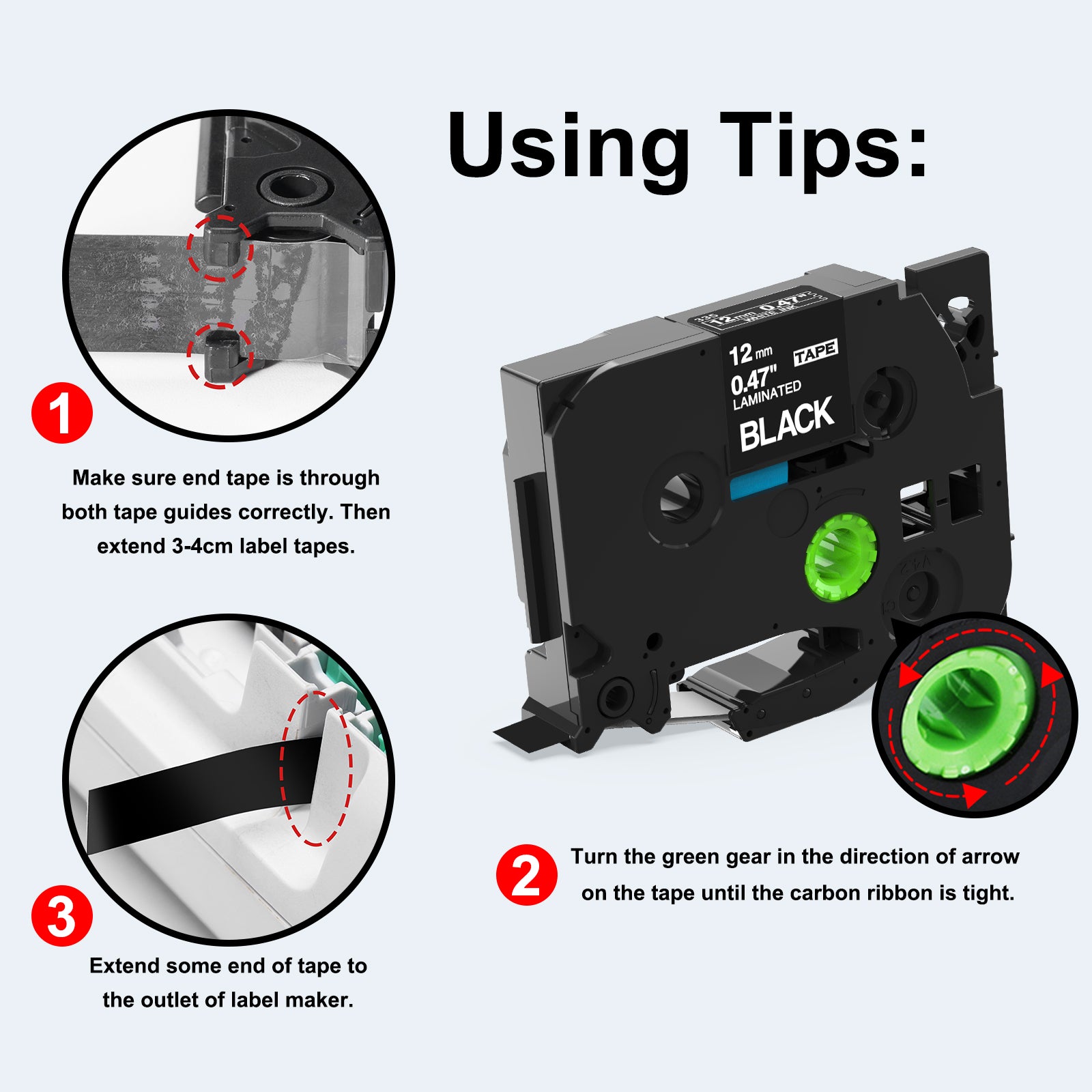 Easy-peel: These TZe TZ Tape 12mm 0.47 inch laminated black label tapes TZe-335 have split backing for easy peeling.