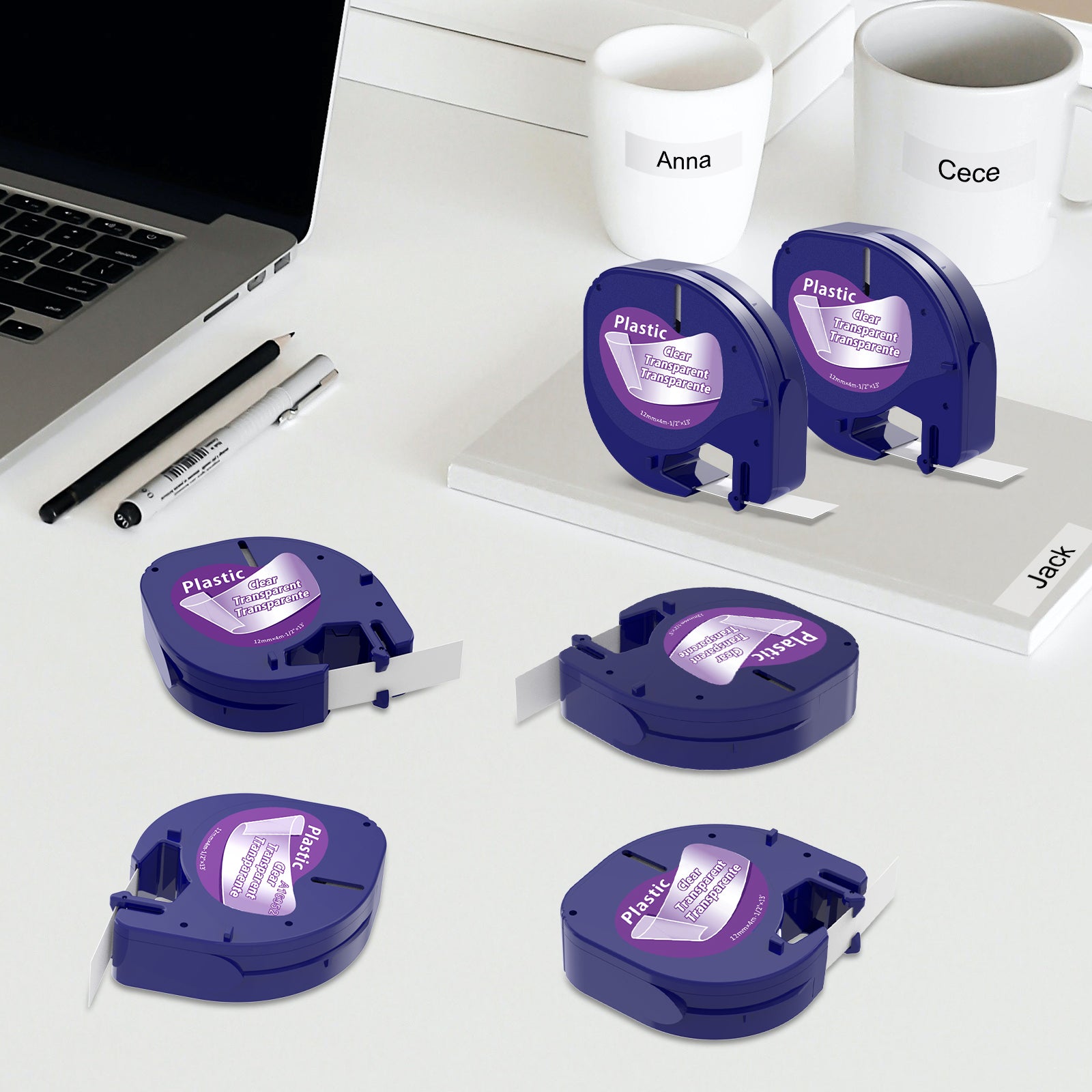 - [Self-adhesive labels] compatible with dymo letratag labels transparent with features of water-resistant, fading-resistant, tear-resistant. The backing tape is split lengthways in the middle for easy peeling. No sticky residue remains after removed.