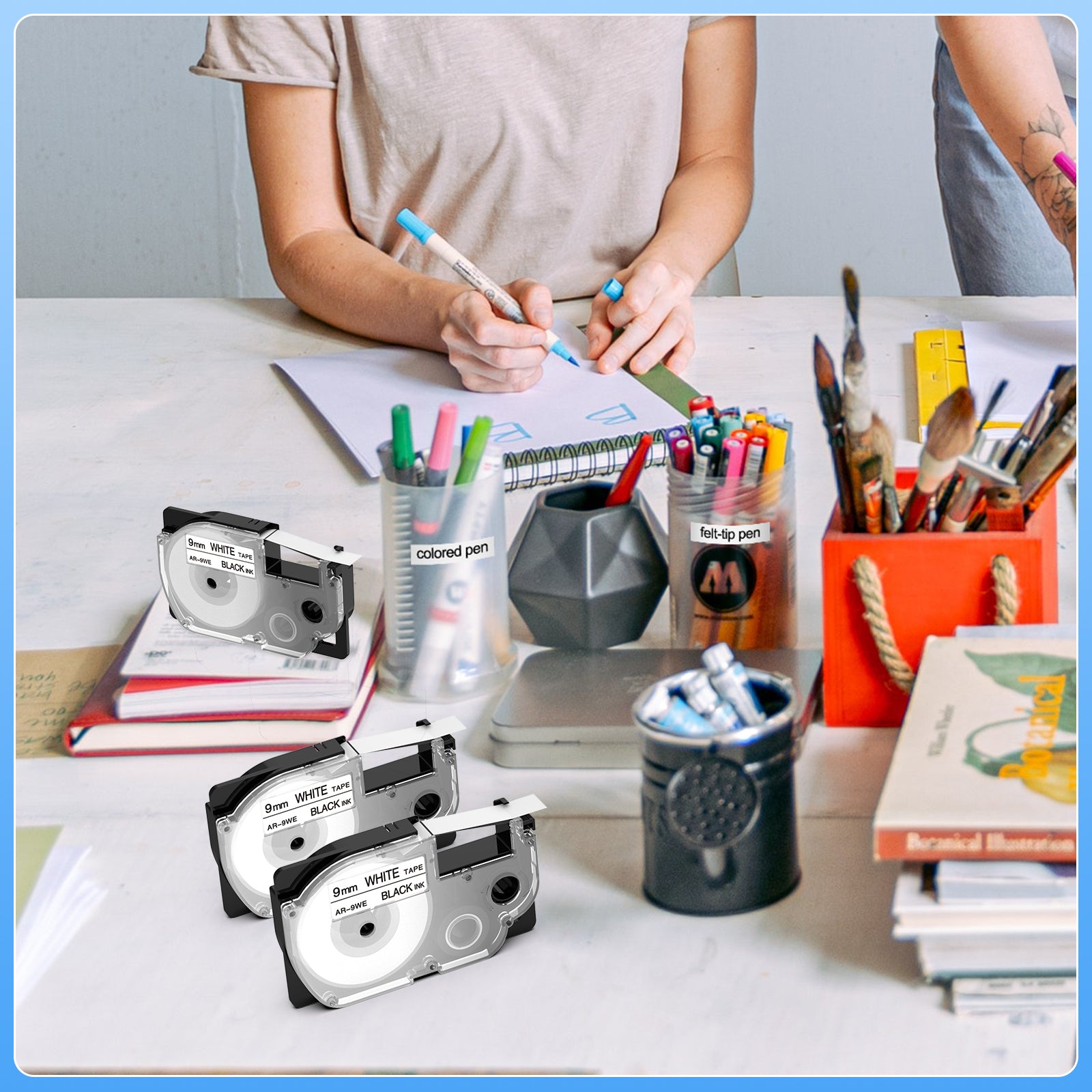 - [Widely use] Comptible with Casio label it tape cartridge 9mm organiazation for indoor and outdoor such as office, school, home, shop, hospital, hotel, lab and so on. Print clear and durable labels to meet your daily needs! It makes work and life more organized and tidy.