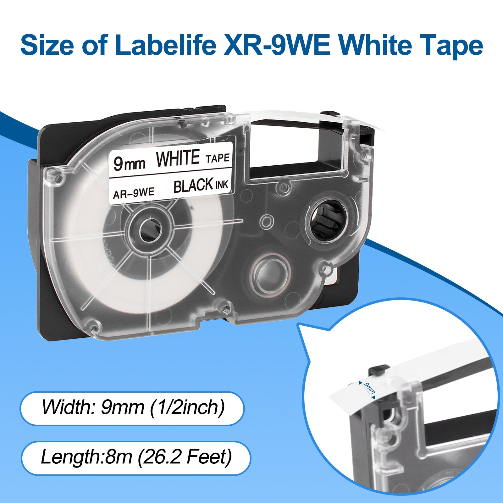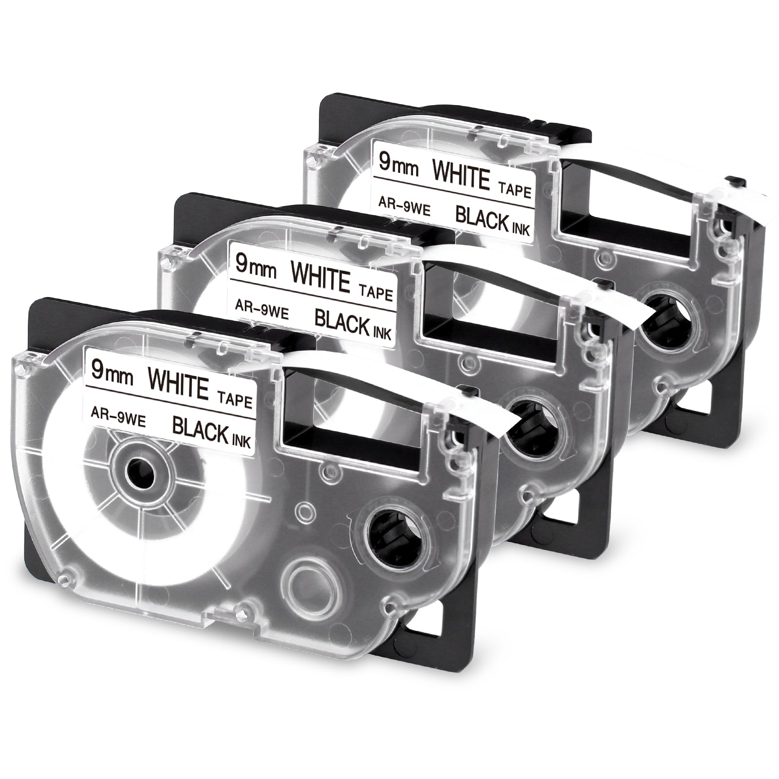 - [Package] 3 packs compatible with Casio label maker tape XR-9WE XR-9WE XR9WE. Size and color of each tape: 3/8" x 26 " (9mm x 8m), black on white. Self-adhesive tapes.