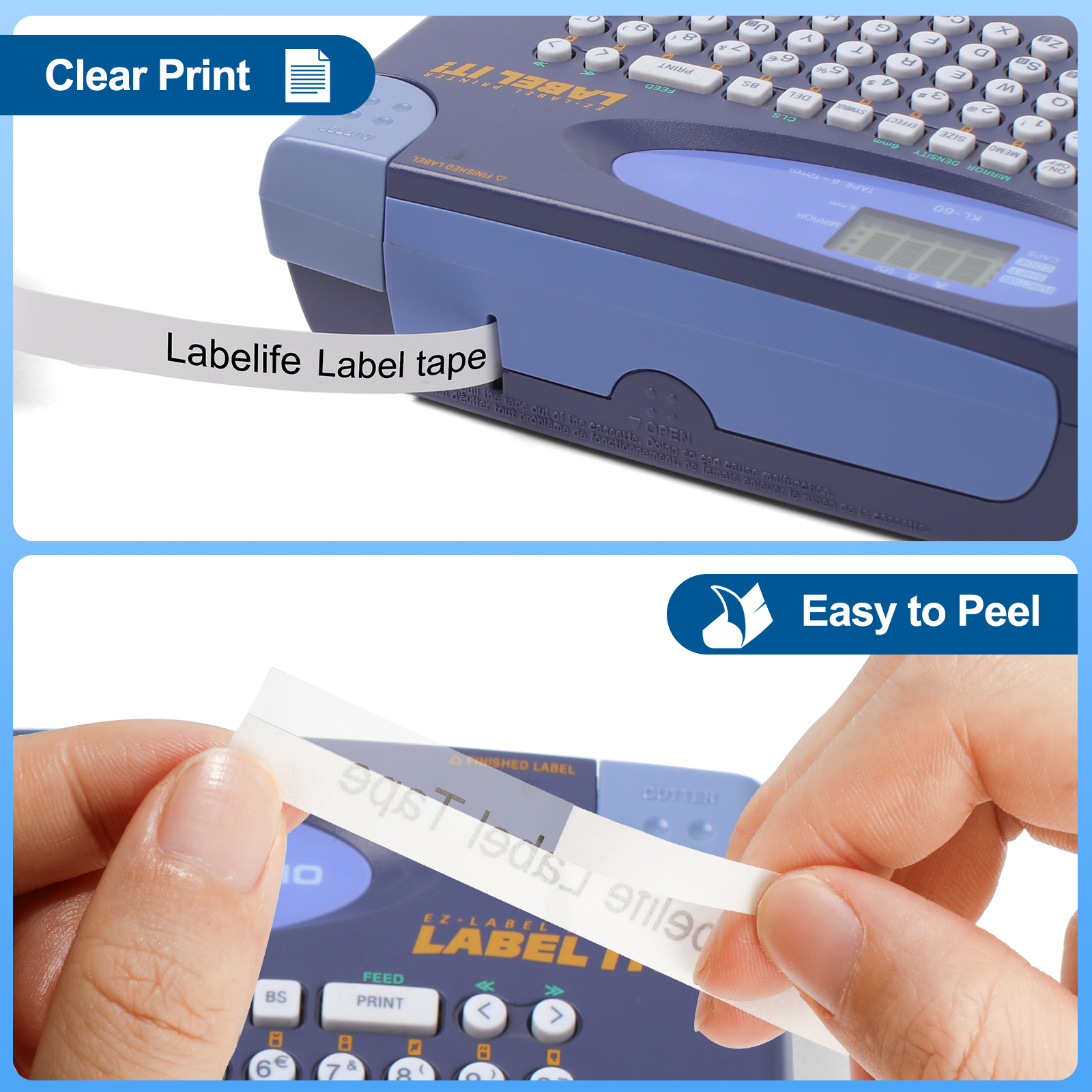 - [Widely use] Comptible with Casio label it tape cartridge 9mm clear organiazation for indoor and outdoor such as office, school, home, shop, hospital, hotel, lab and so on. Print clear and durable labels to meet your daily needs! It makes work and life more organized and tidy.