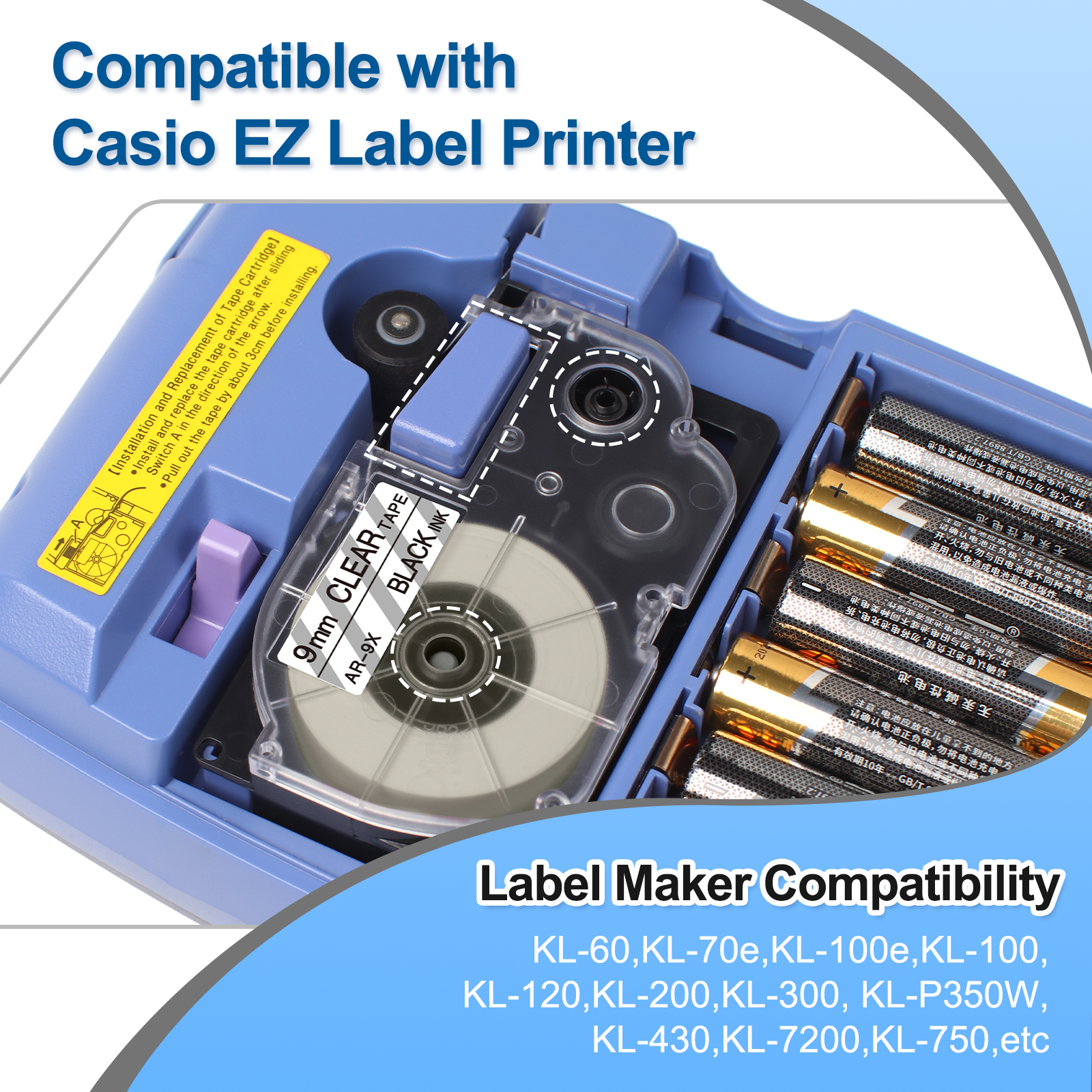 - [Applicable label printer] Compatibel with Casio 9mm clear tape black ink for Casio EZ-label printer Casio KL-60, KL-120, KL-60SR KL-HD1, KL-100, KL-750, KL-780, KL-1500, KL-2000, KL-P1000, KL-300, KL-430, KL-820, KL-7000, KL-7200, KL-8100, KL-8200, and more.